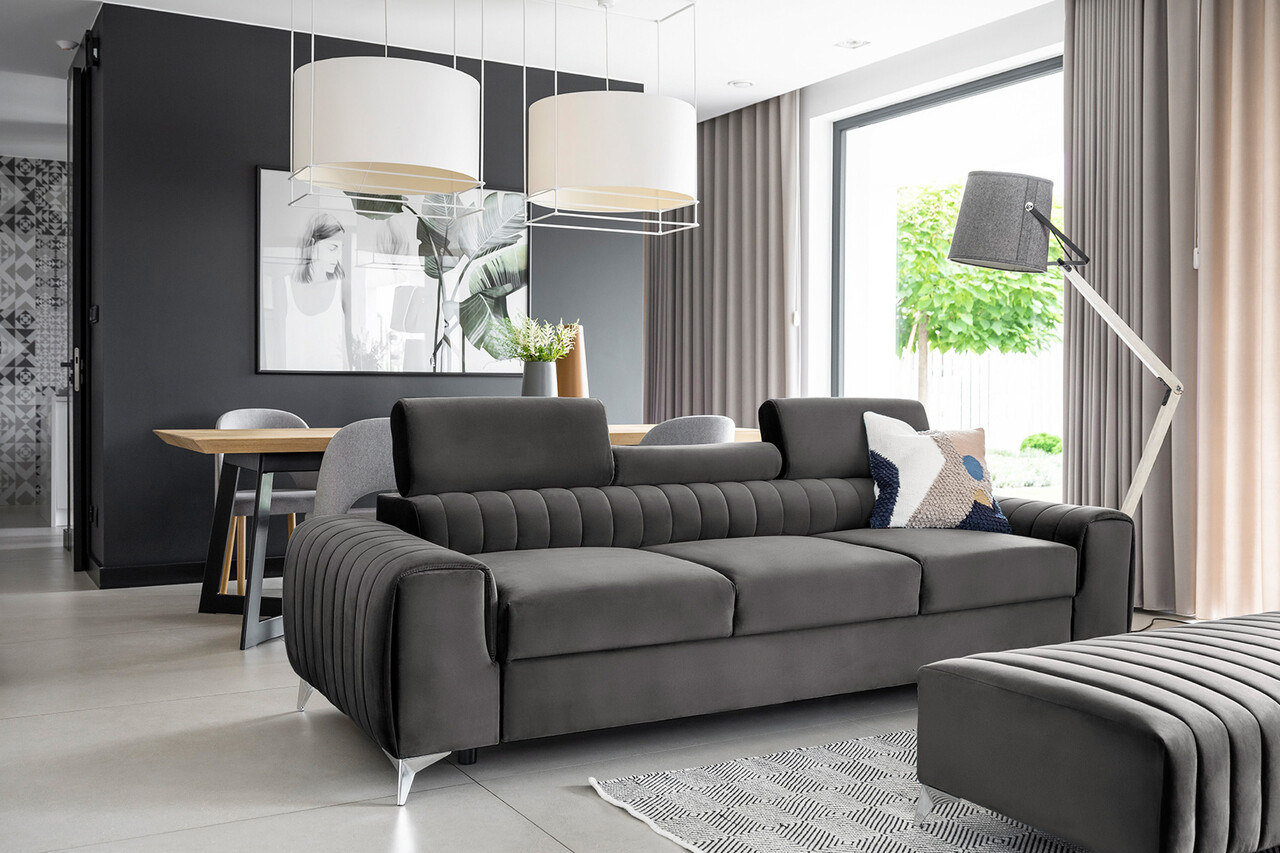 Canapea extensibila 3 locuri, ELTAP, SO-LAU-05NU, Laurence, 261x97x105 cm, lemn/poliester, gri inchis
