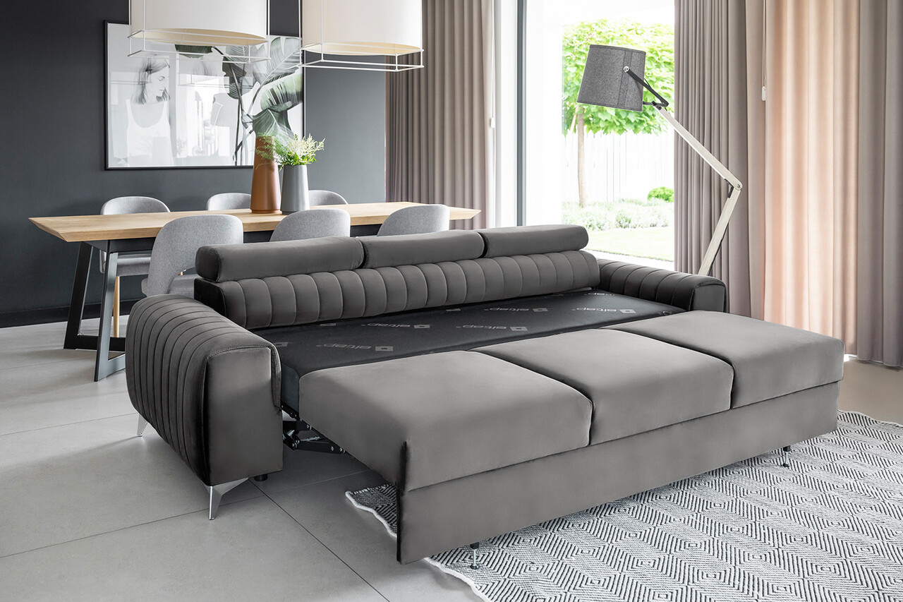 Unul dintre cele mai mari avantaje ale acestui model este functia extensibila, care transforma rapid canapeaua intr-un pat dublu confortabil, perfect pentru musafiri. Mecanismul Puma Plus faciliteaza extinderea, printr-o miscare simpla de ridicare si glisare a sezutului, fara riscul de a zgaria podeaua. Acest sistem intuitiv face ca transformarea canapelei sa fie rapida si usoara pentru oricine.