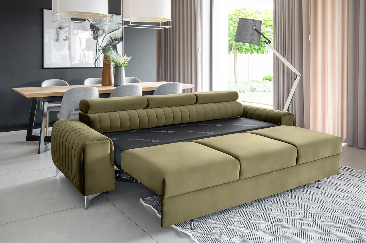 Canapea extensibila 3 locuri, ELTAP, SO-LAU-33NU, Laurence, 261x97x105 cm, lemn/poliester, verde olive