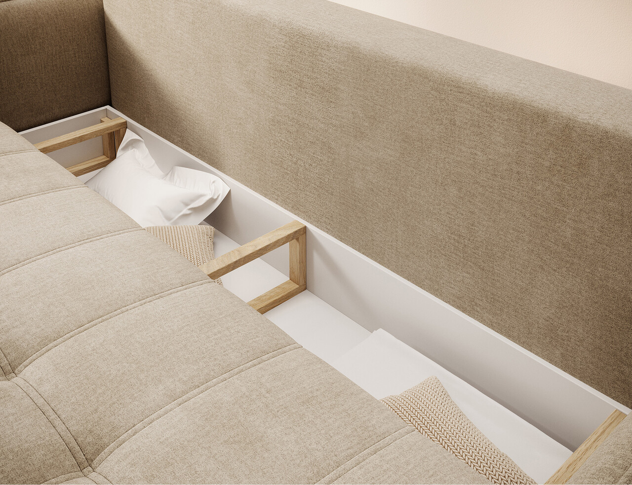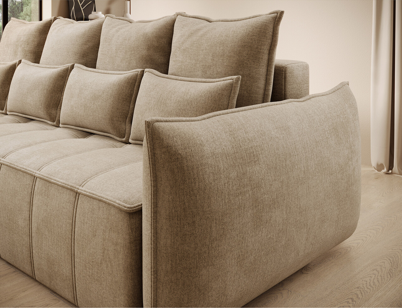 Canapea extensibila 3 locuri ELTAP, Weltton, 242x106x94 cm, lemn/poliester, bej inchis