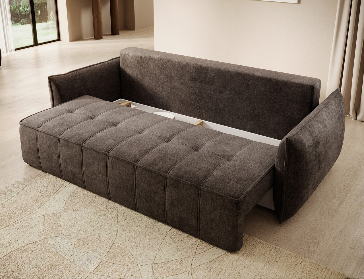 Canapea extensibila 3 locuri ELTAP, Weltton, 242x106x94 cm, lemn/poliester, maro