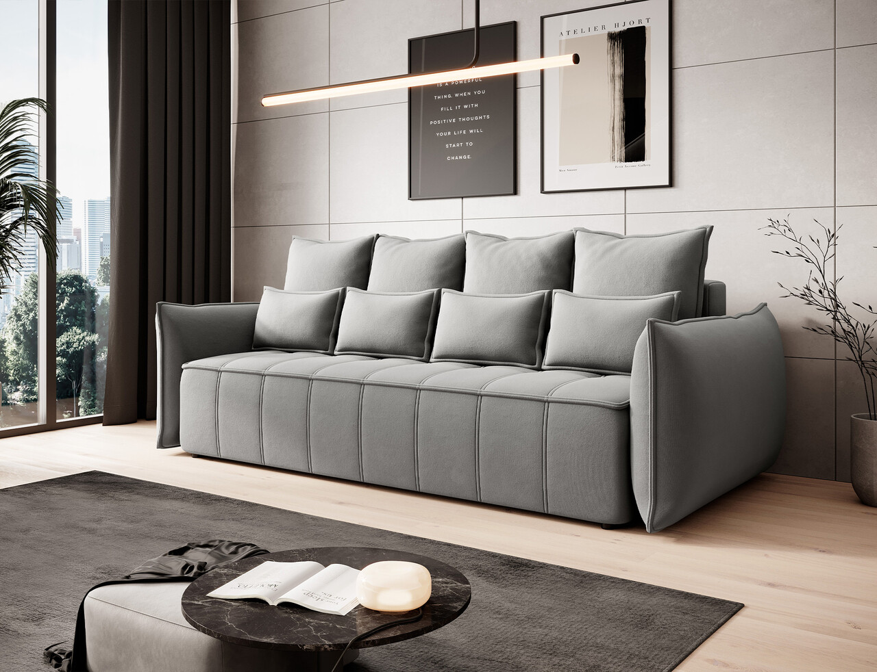 Canapea extensibila 3 locuri ELTAP, Weltton, 242x106x94 cm, lemn/poliester, gri