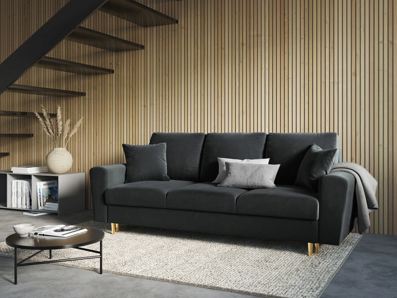 Canapea extensibila 3 locuri, Moghan, Micadoni Home, GL, 235x100x88 cm, catifea, gri inchis