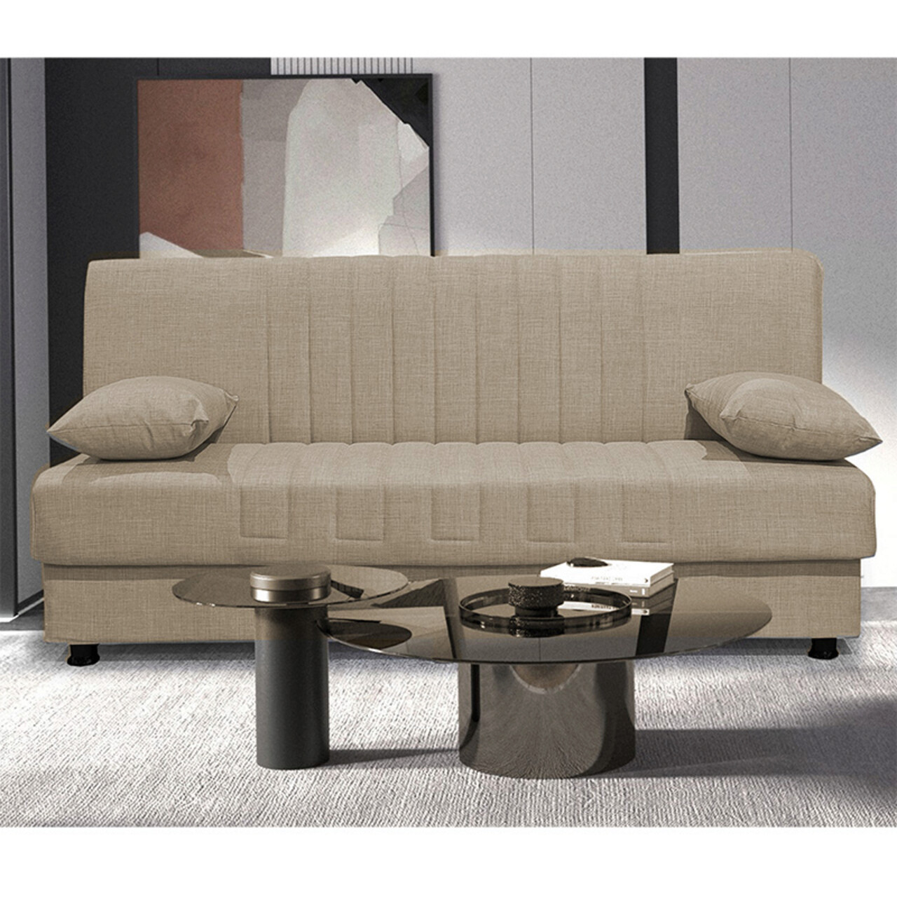 Canapea extensibila 3 locuri Romina, Pakoworld, 190x90x80 cm, textil/lemn de plop, bej/negru