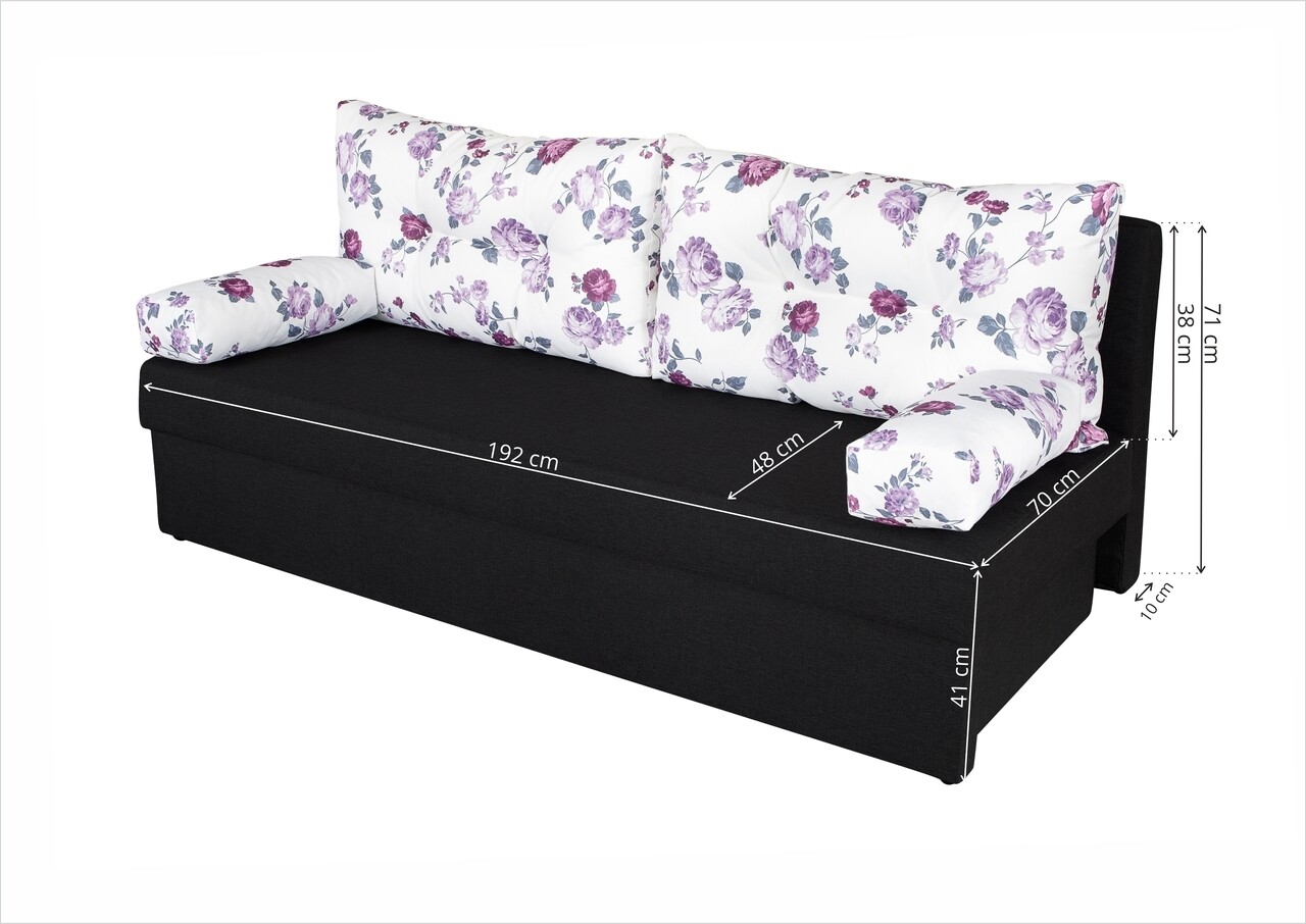 Nuanta simpla si imprimeul vesel al pernelor face ca aceasta canapea sa invioreze atmosfera, dar si