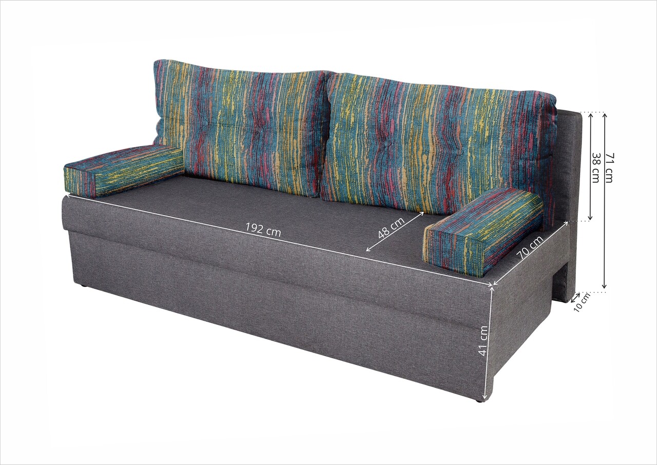 Nuanta simpla si imprimeul vesel al pernelor face ca aceasta canapea sa invioreze atmosfera,dar si sa ofere o nota de eleganta spatiului din care face parte.