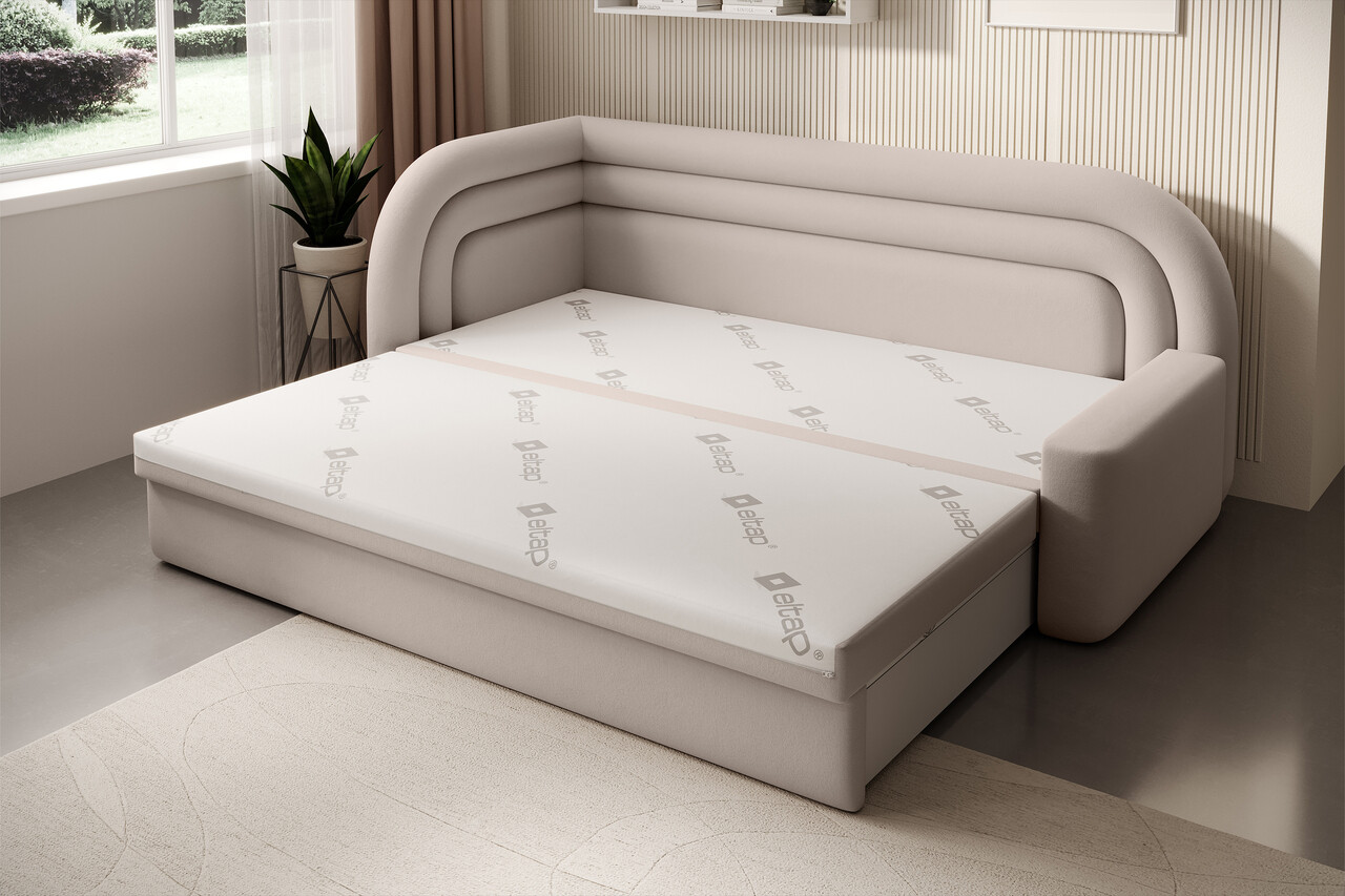 Un alt avantaj al acestei canapele este functia sa de pat extensibil, ideala pentru oaspeti sau ca spatiu suplimentar de dormit in living. Mecanismul de extindere este simplu si intuitiv iar suprafata de dormit uniforma si confortabila asigura un somn odihnitor.