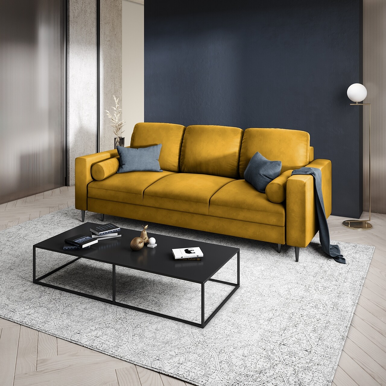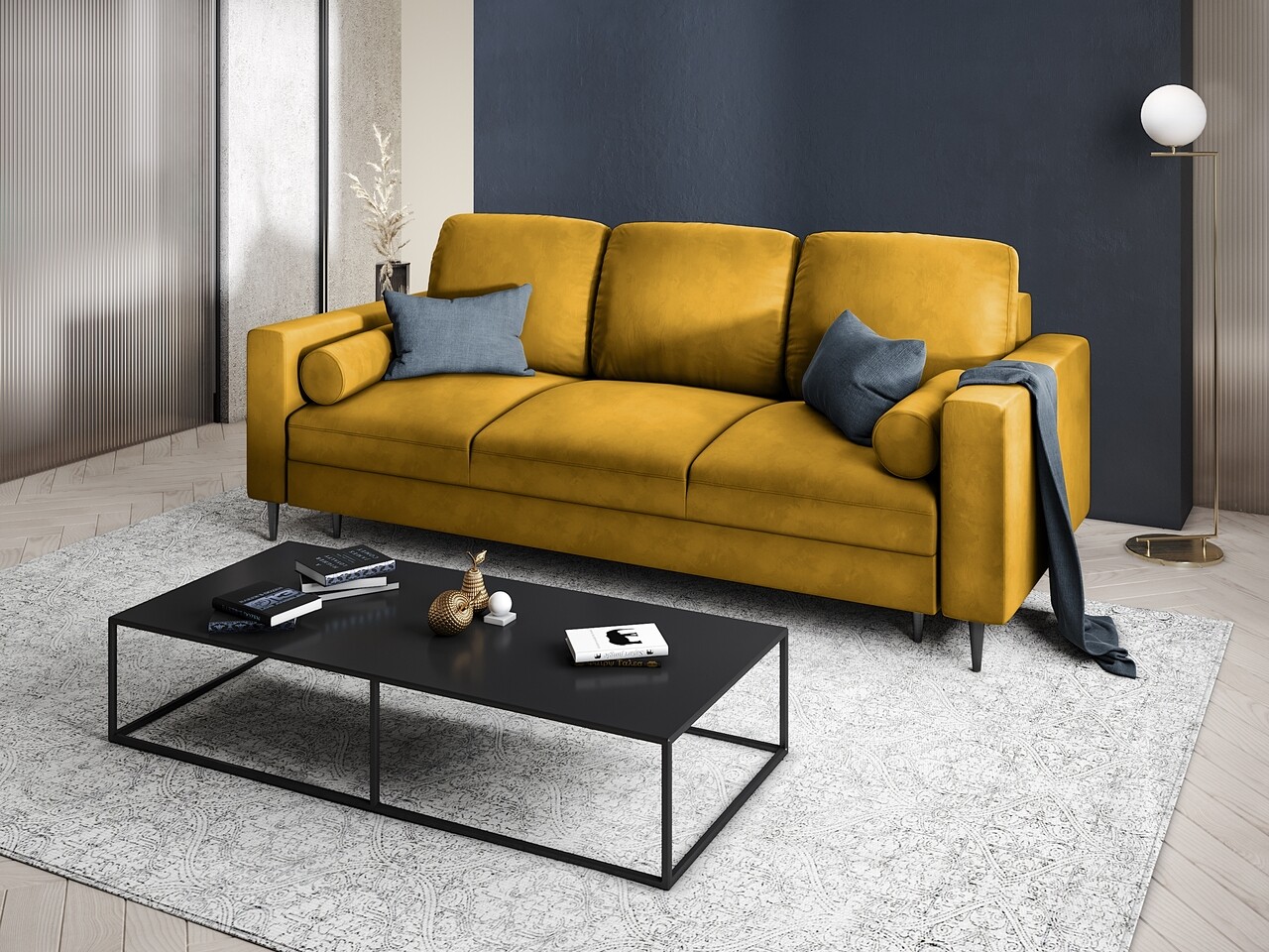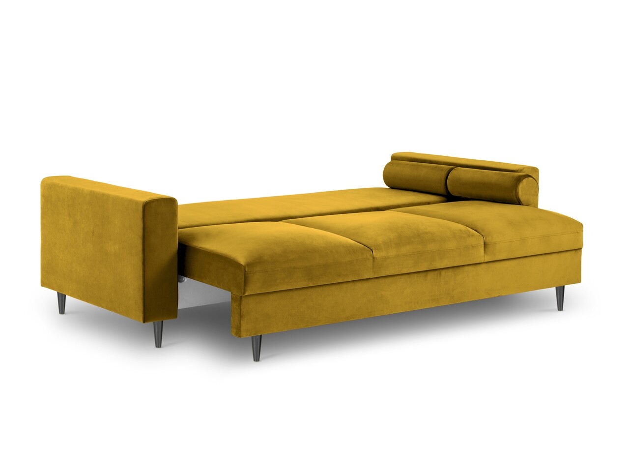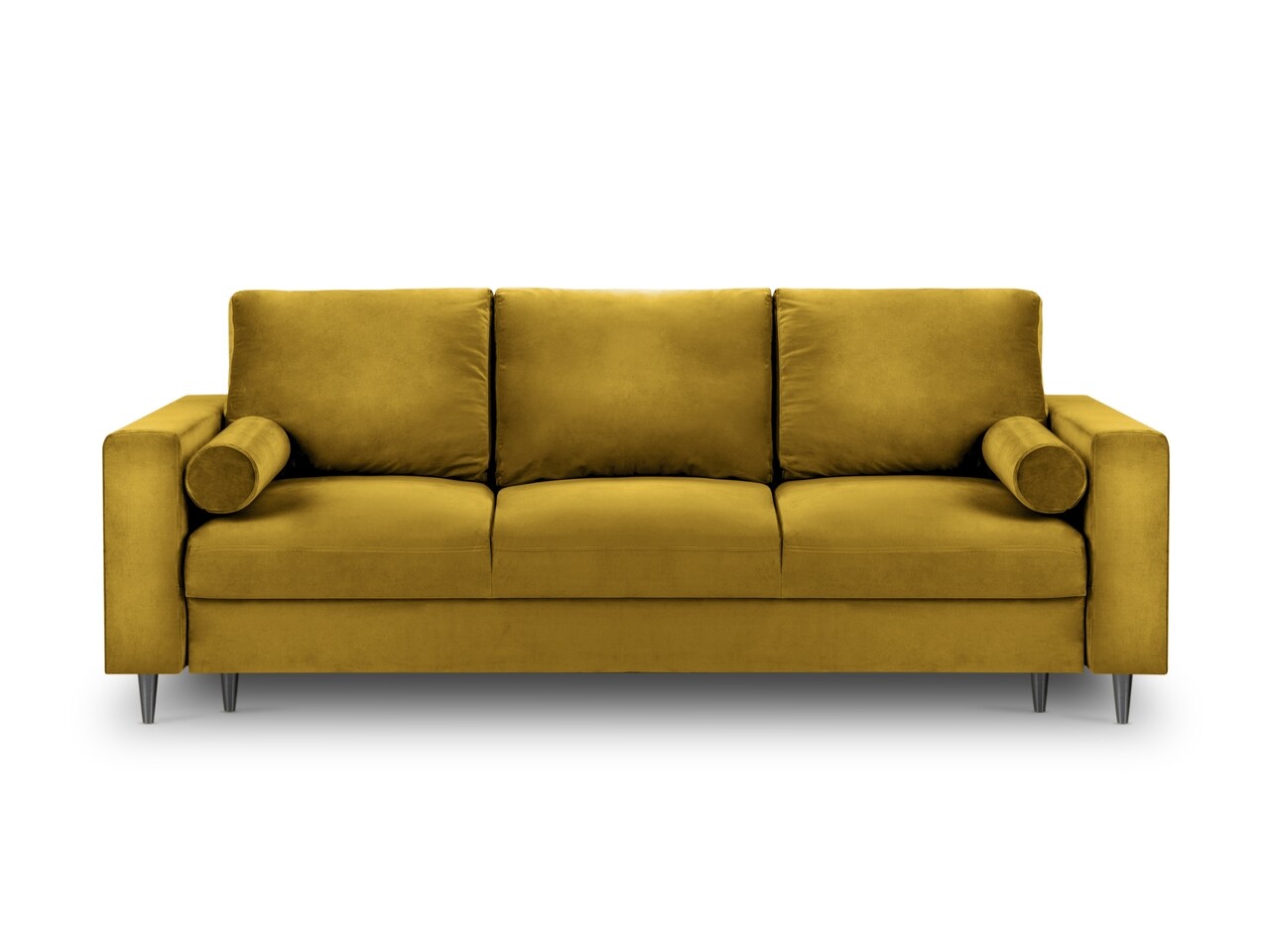 Canapea extensibila, Camellia, Mazzini Sofas, 3 locuri, cu lada de depozitare, 220x100x92 cm, catifea, galben