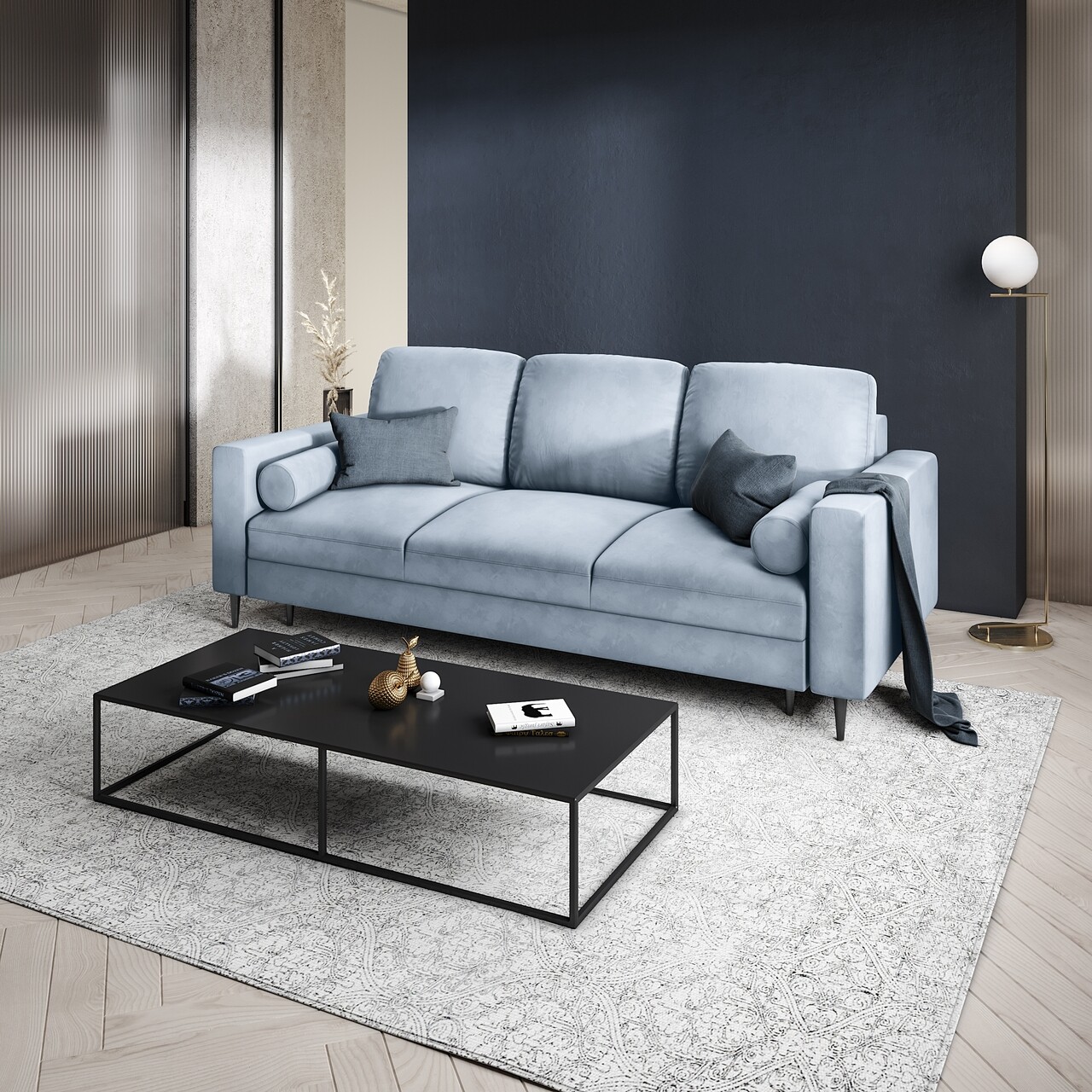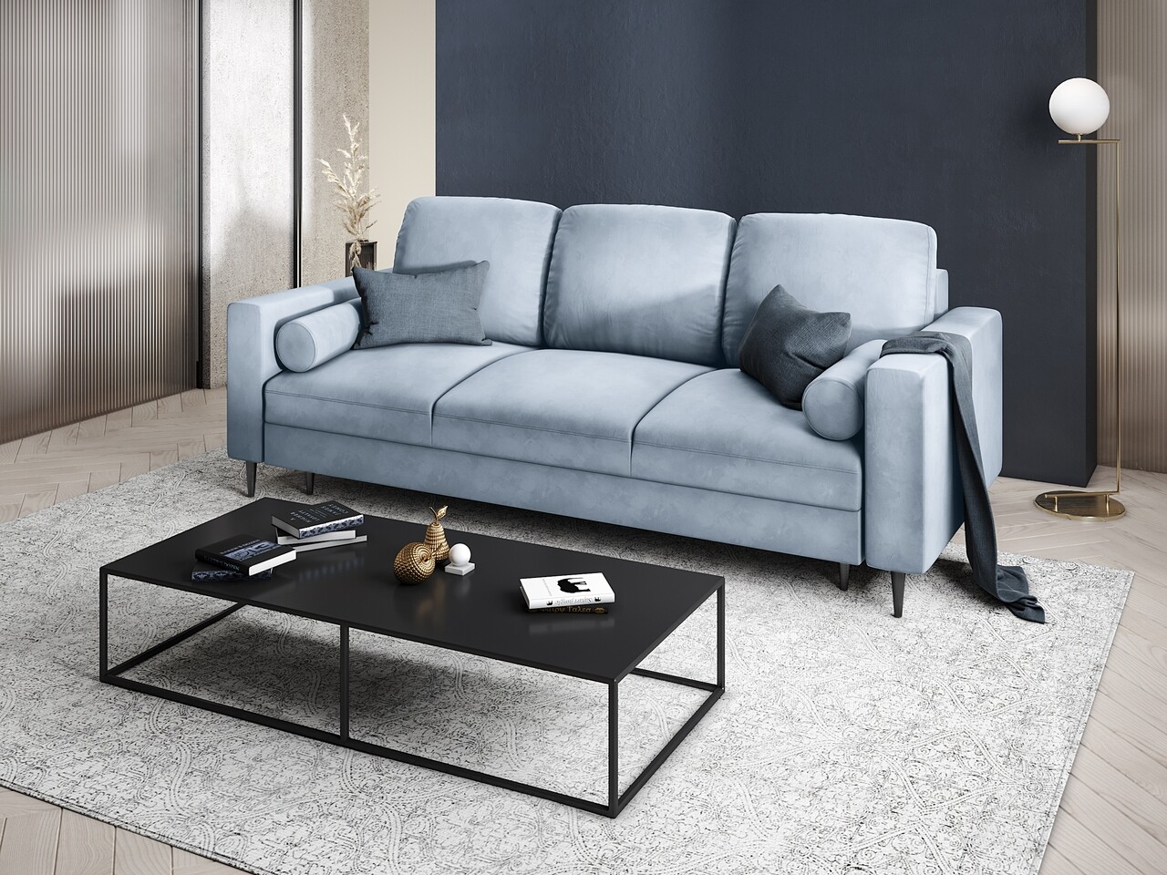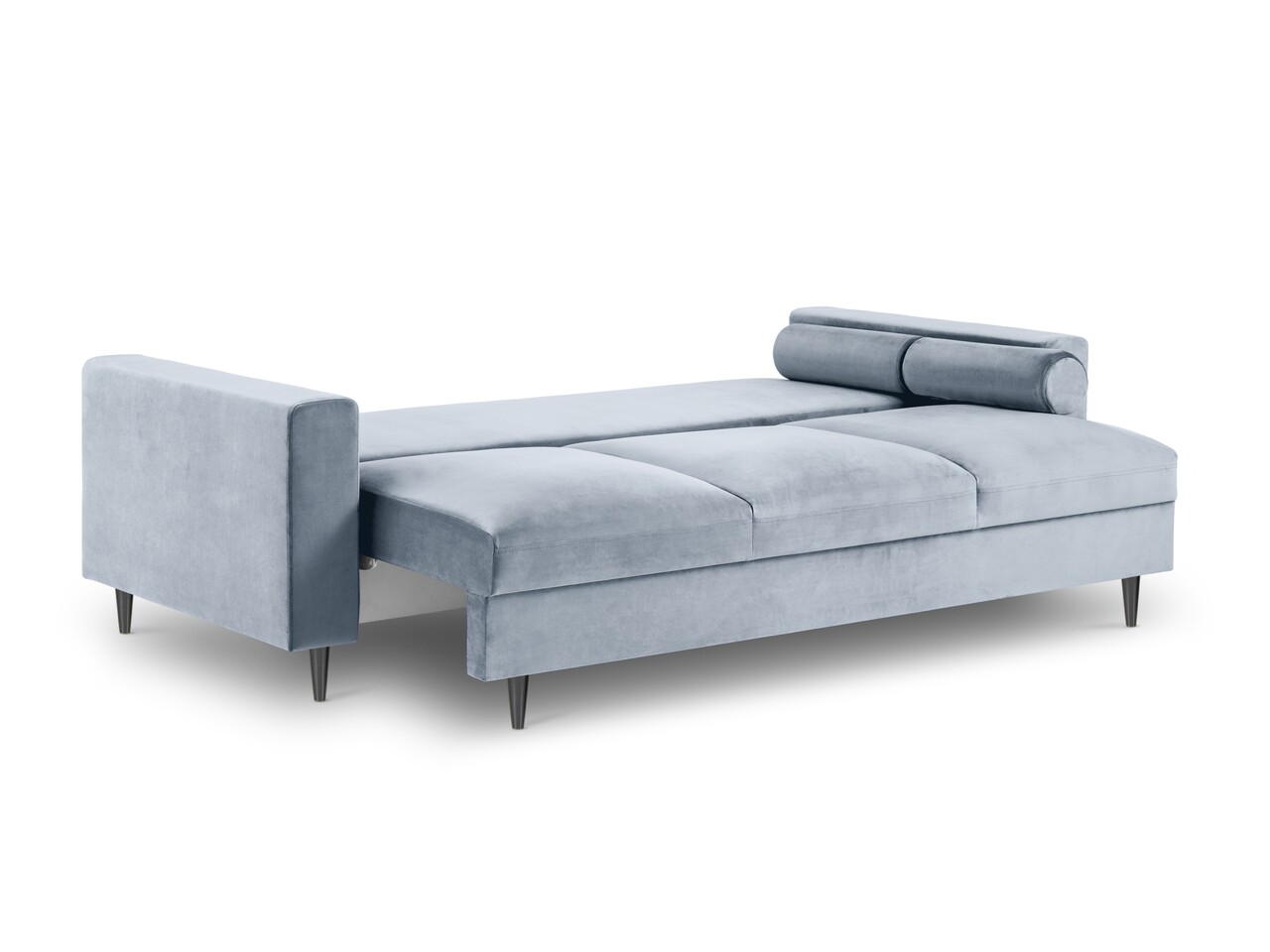 Canapea extensibila, Camellia, Mazzini Sofas, 3 locuri, cu lada de depozitare, 220x100x92 cm, catifea, albastru deschis