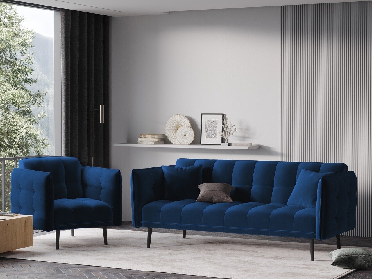 Canapea extensibila, Canna, Mazzini Sofas, 3 locuri, 225x100x85 cm, catifea, albastru regal