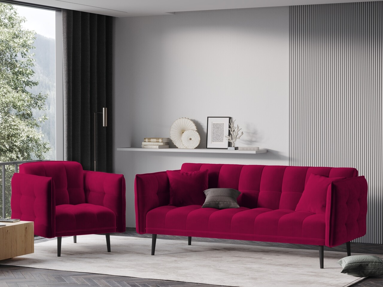 Canapea extensibila, Canna, Mazzini Sofas, 3 locuri, 225x100x85 cm, catifea, rosu vin