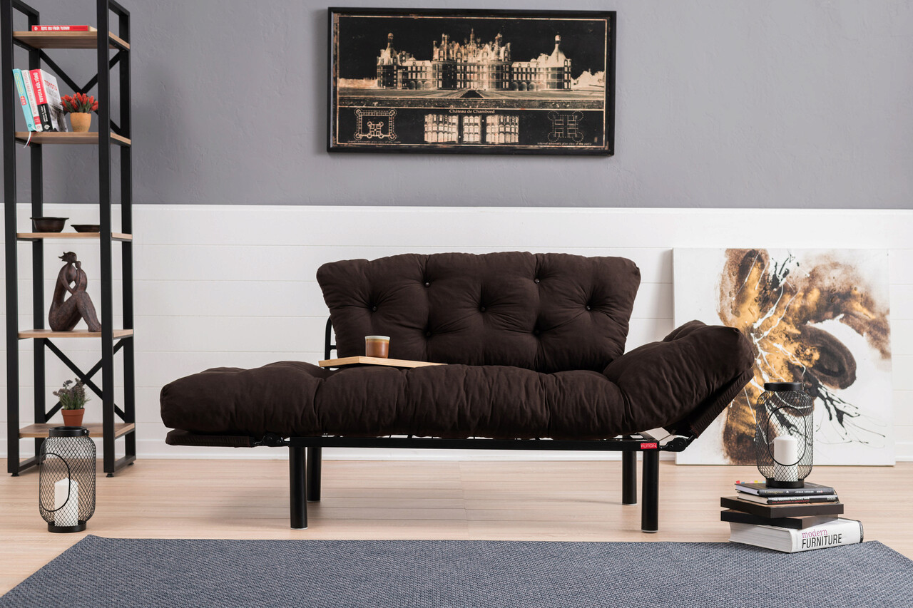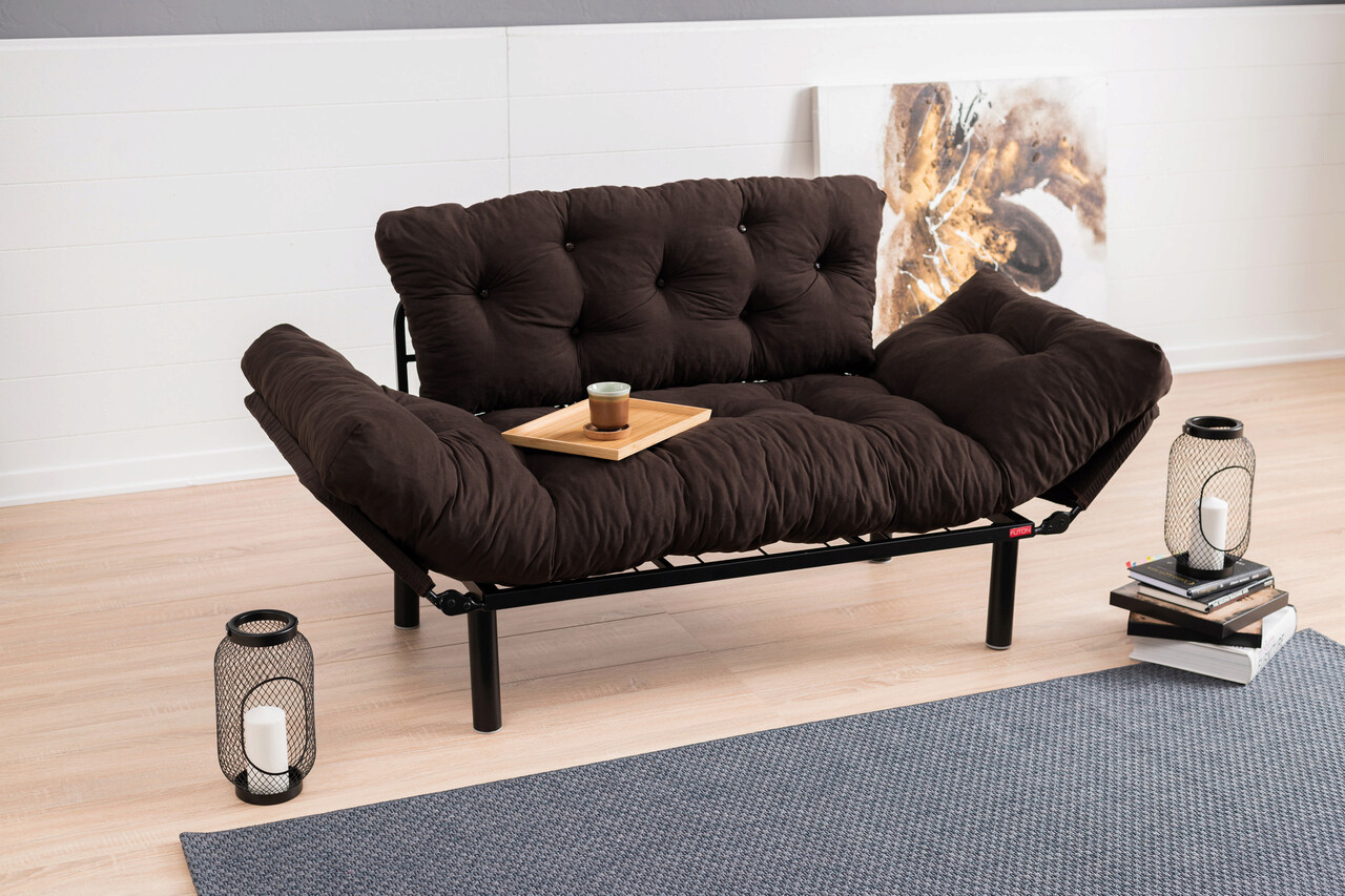 Canapea extensibilă cu 2 locuri, Futon, 859FTN1217, Metal, Maro