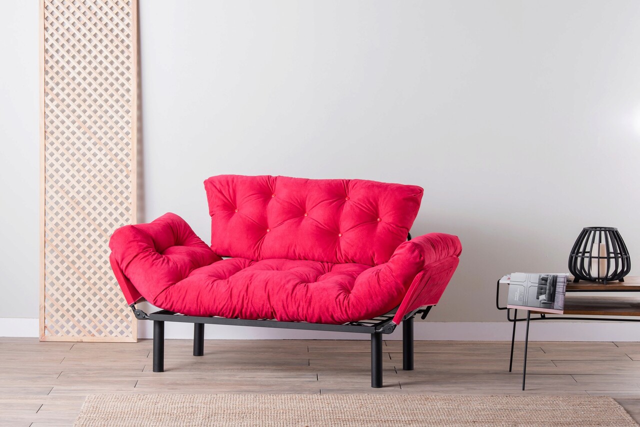 Canapea extensibilă cu 2 locuri, Futon, 859FTN1244, Metal, Fucsia