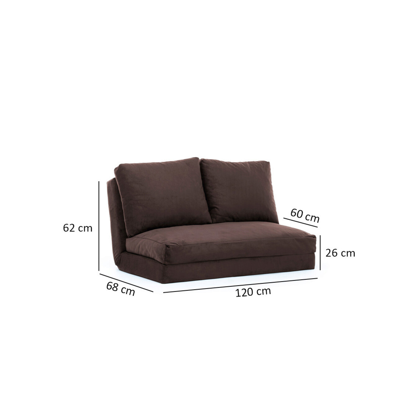 Canapea extensibilă cu 2 locuri, Futon, 859FTN1267, Metal , Maro