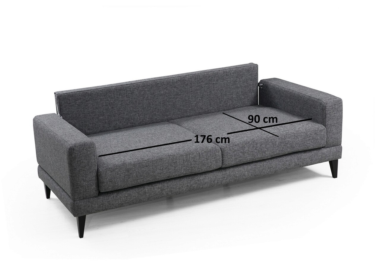 Canapea extensibila cu 3 locuri, Artie, 560ARE1307, Lemn de fag / PAL, Gri inchis