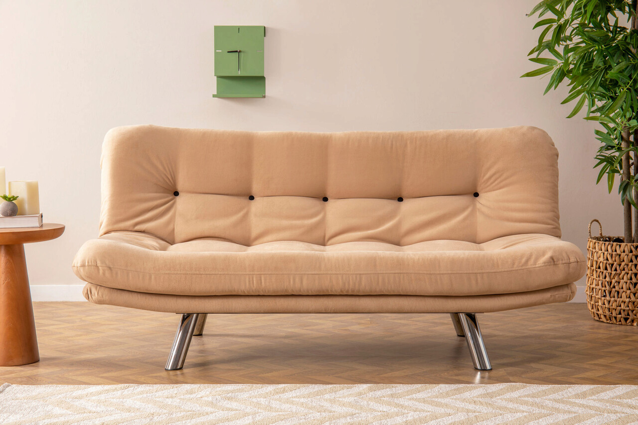 Canapea extensibila cu 3 locuri, Futon, 859FTN2801, Metal, Crem