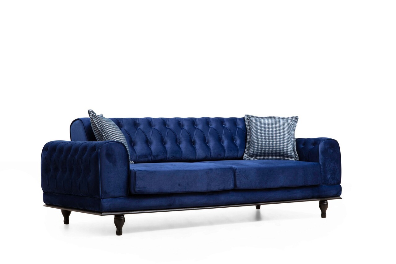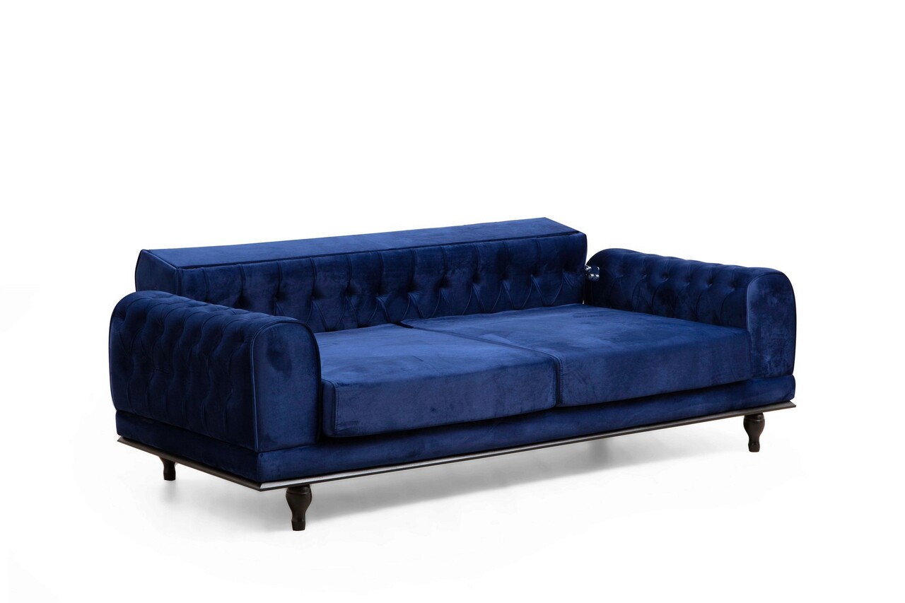 Canapea extensibila cu 3 locuri, Hilena, 569HLN1703, Lemn de fag / PAL, Albastru navy