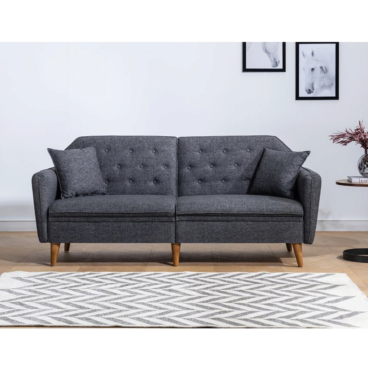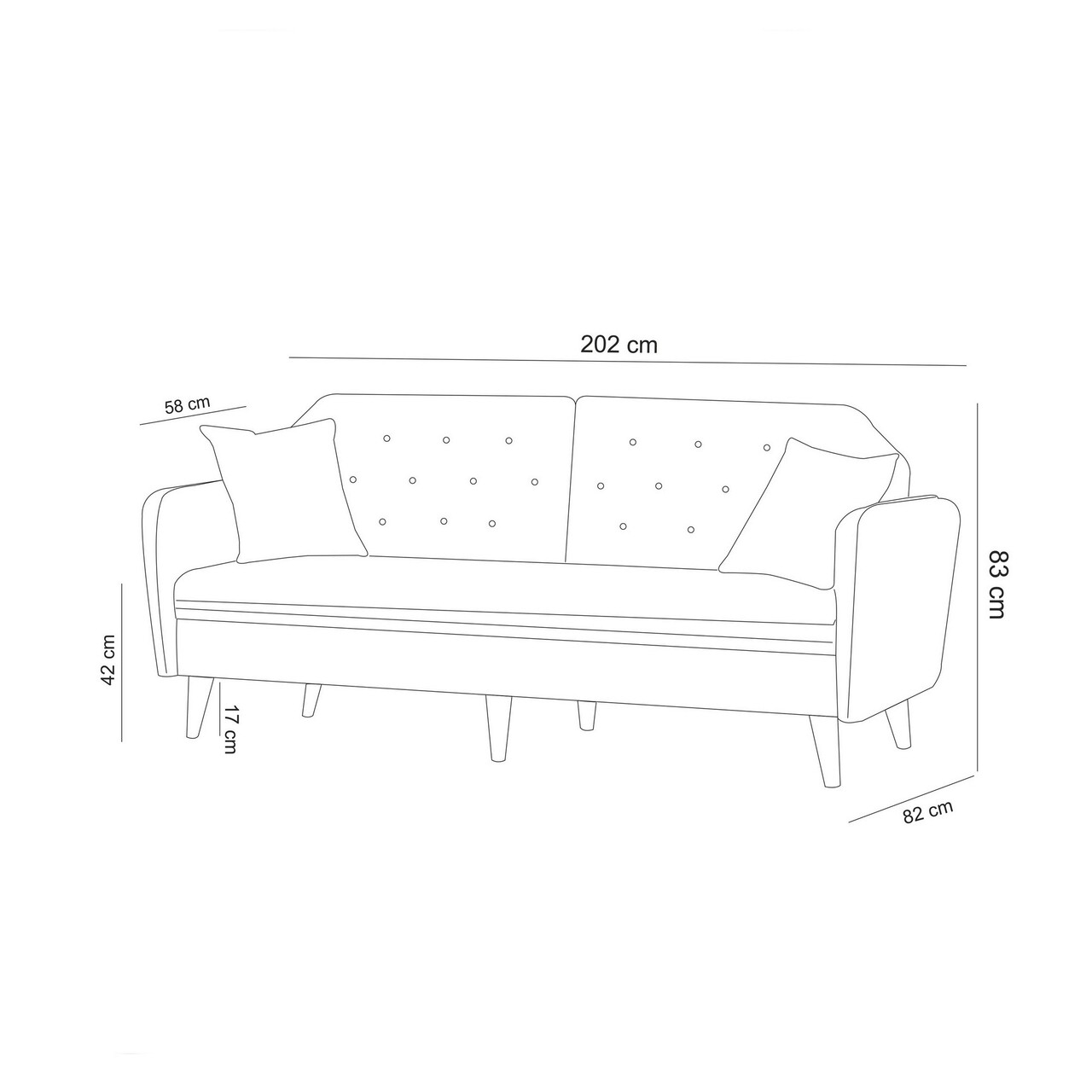 Canapea extensibila cu 3 locuri, Unique Design, 867UNQ1319, Lemn de carpen / Metal, Gri inchis