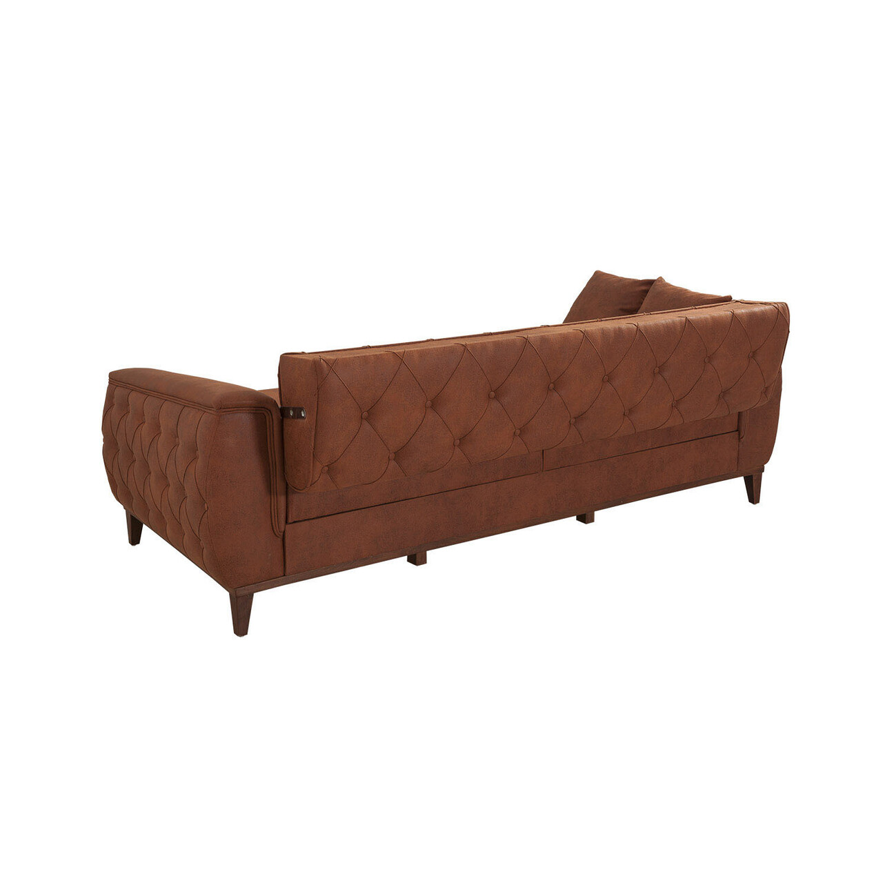 Canapea extensibila cu 3 locuri, Unique Design, 867UNQ1527, Lemn de carpen, Maro