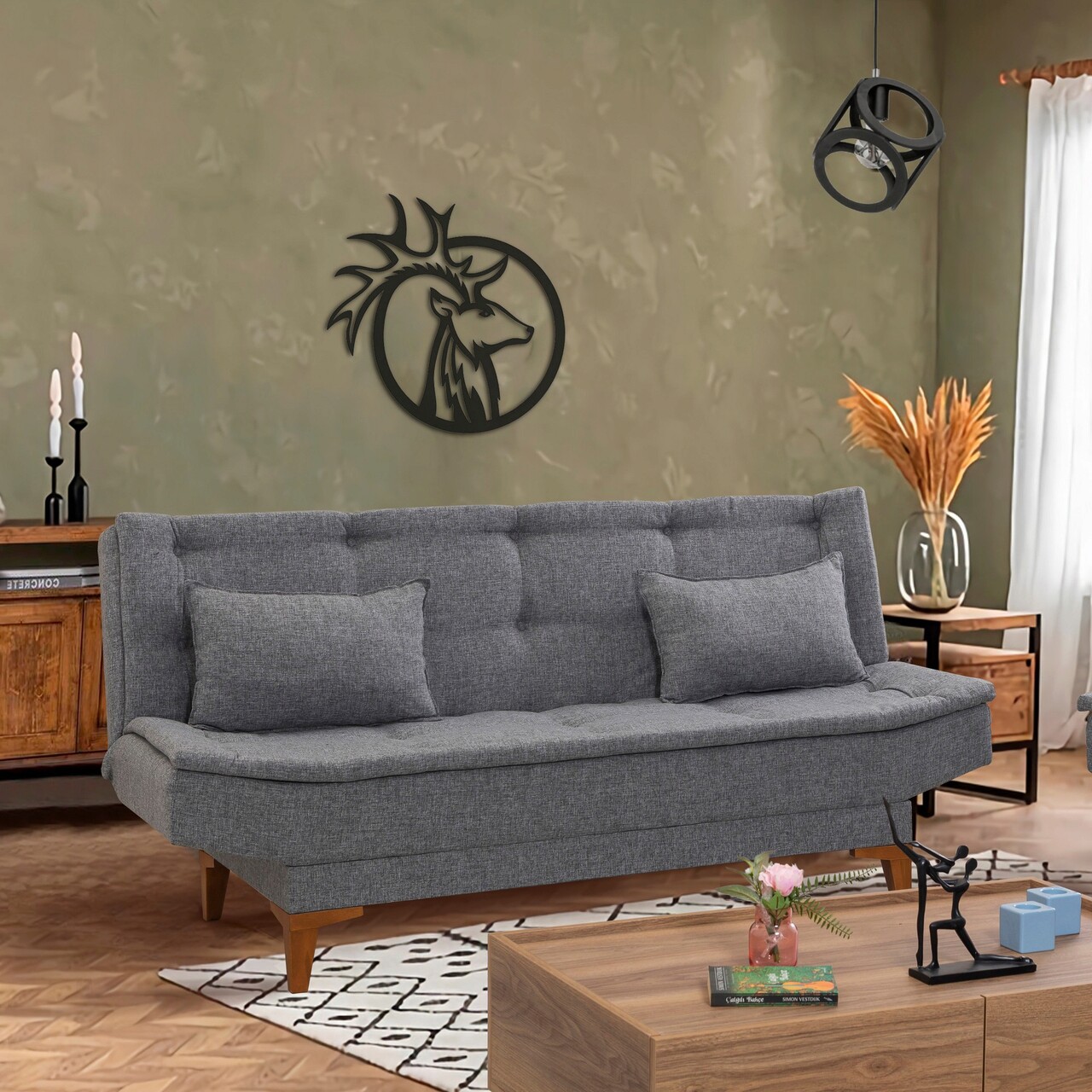 Canapea extensibila cu 3 locuri, Unique Design, 867UNQ1649, Lemn de fag, Gri inchis