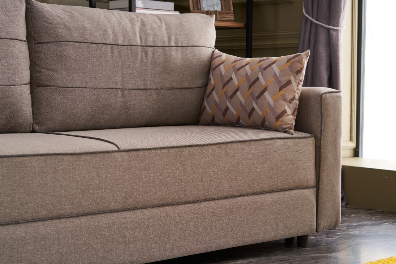 Canapea extensibila Ece, Balcab Home, 3 locuri, 215x90x88 cm, lemn, crem