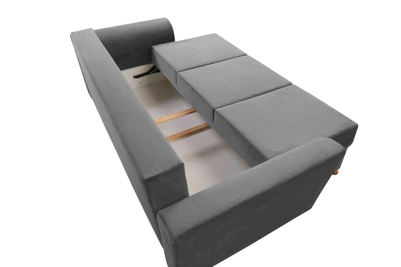 Cu un design contemporan, canapeaua Ferrara oferea un aspect relaxat, dar si sofisticat oricarui spatiu. Aceasta piesa de mobilier catifelata si moale, nu numai ca adauga o nota de lux incaperii, dar este si extrem de practica, transformandu-se intr-un pat incapator ori de cate ori ai nevoie.