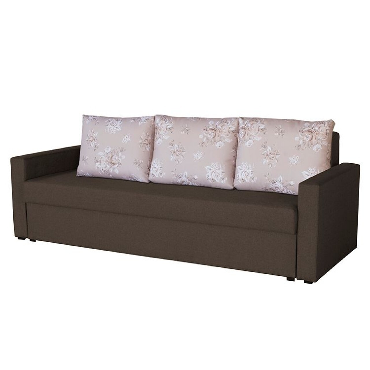 Canapea Extensibila Firenze Dark Chocolate Beige Flower 218x85x85 cm, cu lada de depozitare