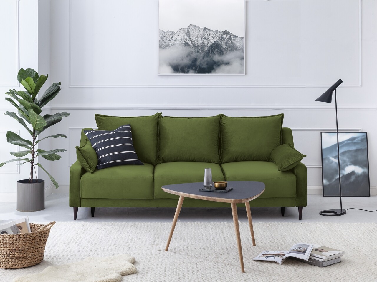 Canapea extensibila, Freesia, Mazzini Sofas, 3 locuri, cu lada de depozitare, 215x94x90 cm, catifea, verde