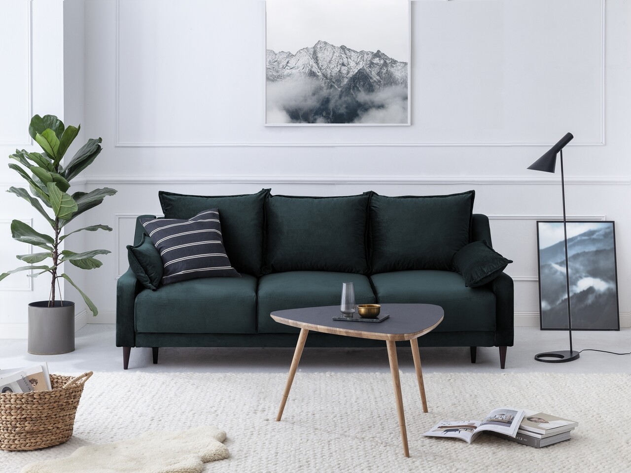 Canapea extensibila, Freesia, Mazzini Sofas, 3 locuri, cu lada de depozitare, 215x94x90 cm, catifea, albastru petrol