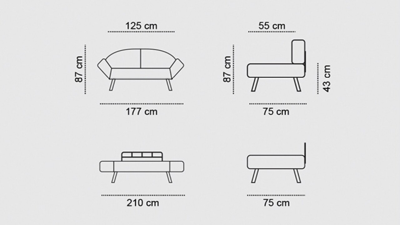 Canapea extensibila Genzo, Futon, 2 locuri, 177x81x87 cm, metal, negru