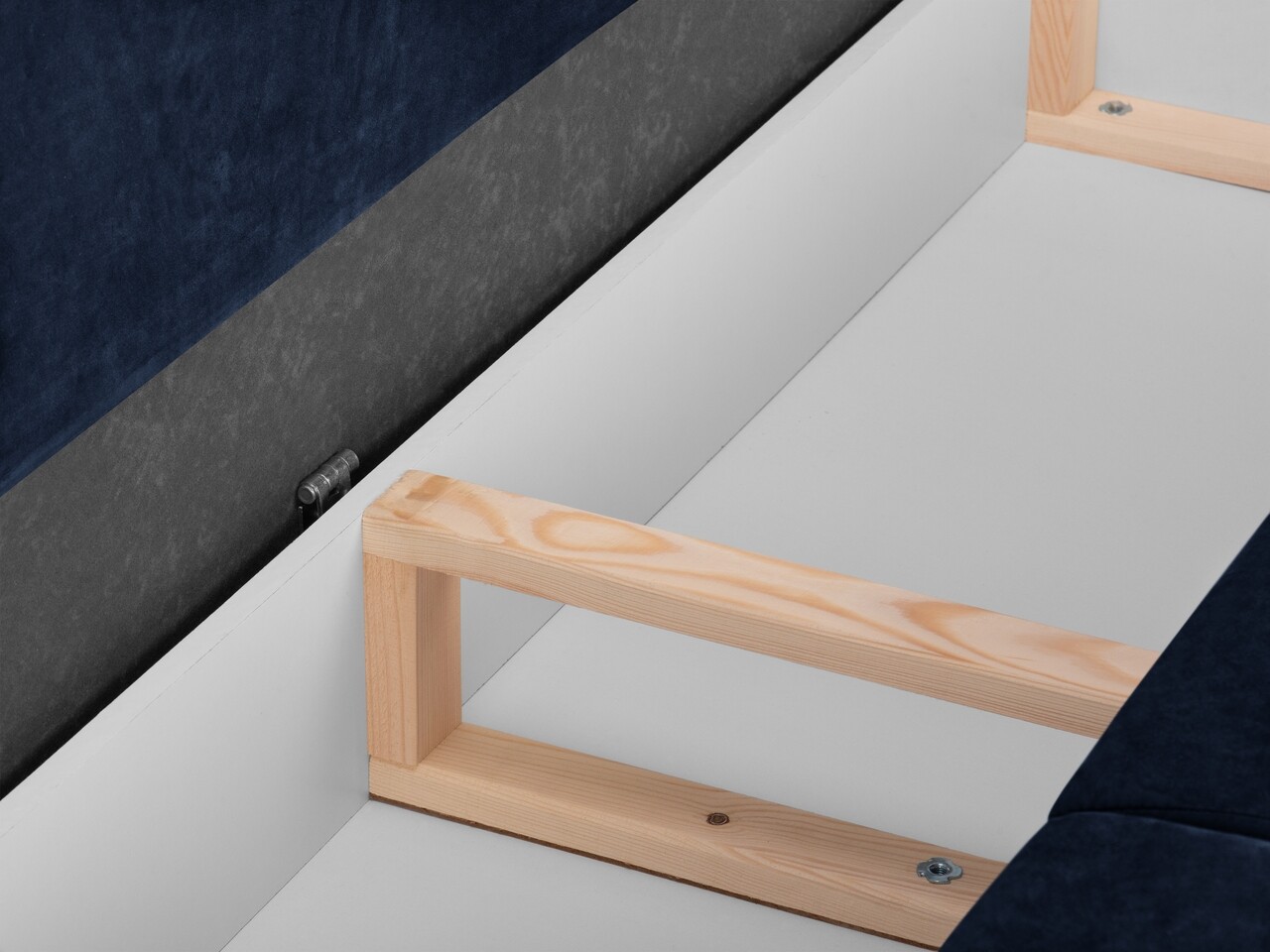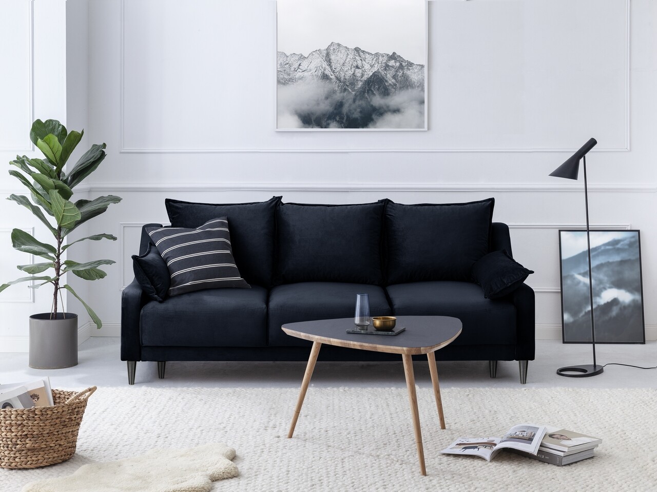 Canapea extensibila, Lilas, Mazzini Sofas, 3 locuri, cu lada de depozitare, 215x94x90 cm, catifea, albastru inchis