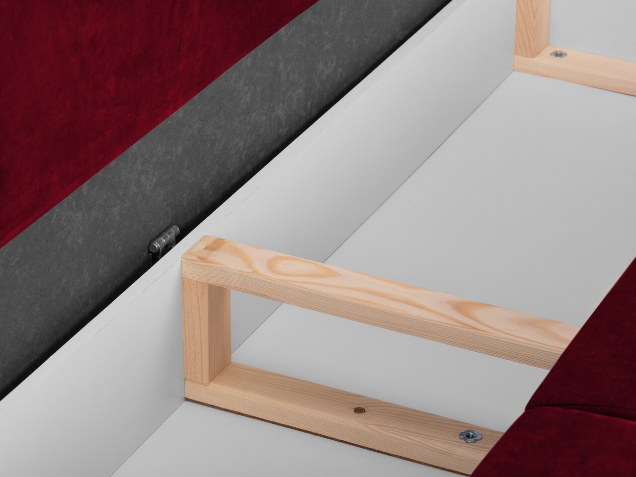 - Material de structura: cadru din lemn masiv de pin, PAL, placi aglomerate de lemn, placaj, arcuri, picioare din metal cromat negru