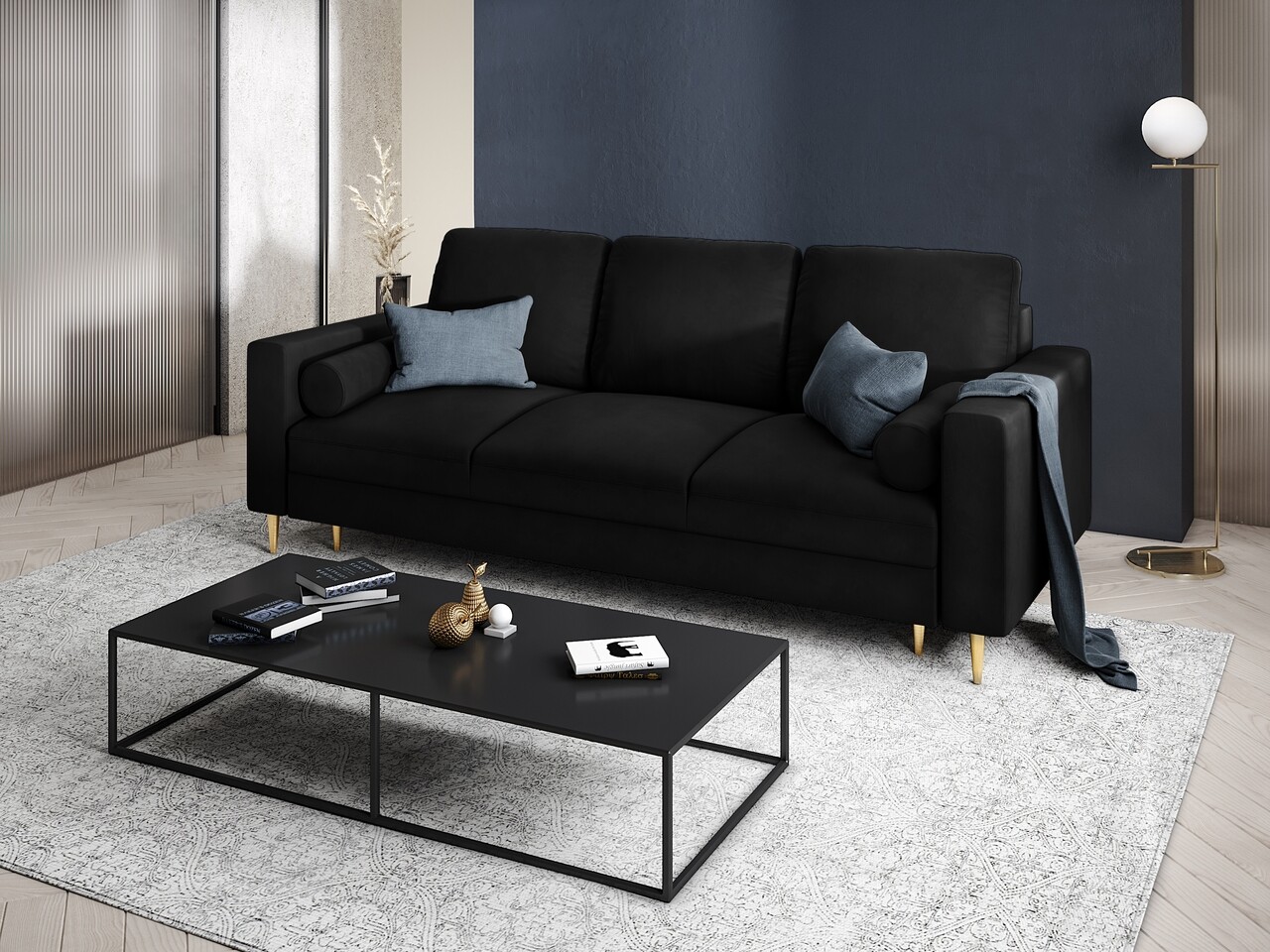 Canapea extensibila, Mimosa, Mazzini Sofas, 3 locuri, cu lada de depozitare, 220x100x92 cm, catifea, negru