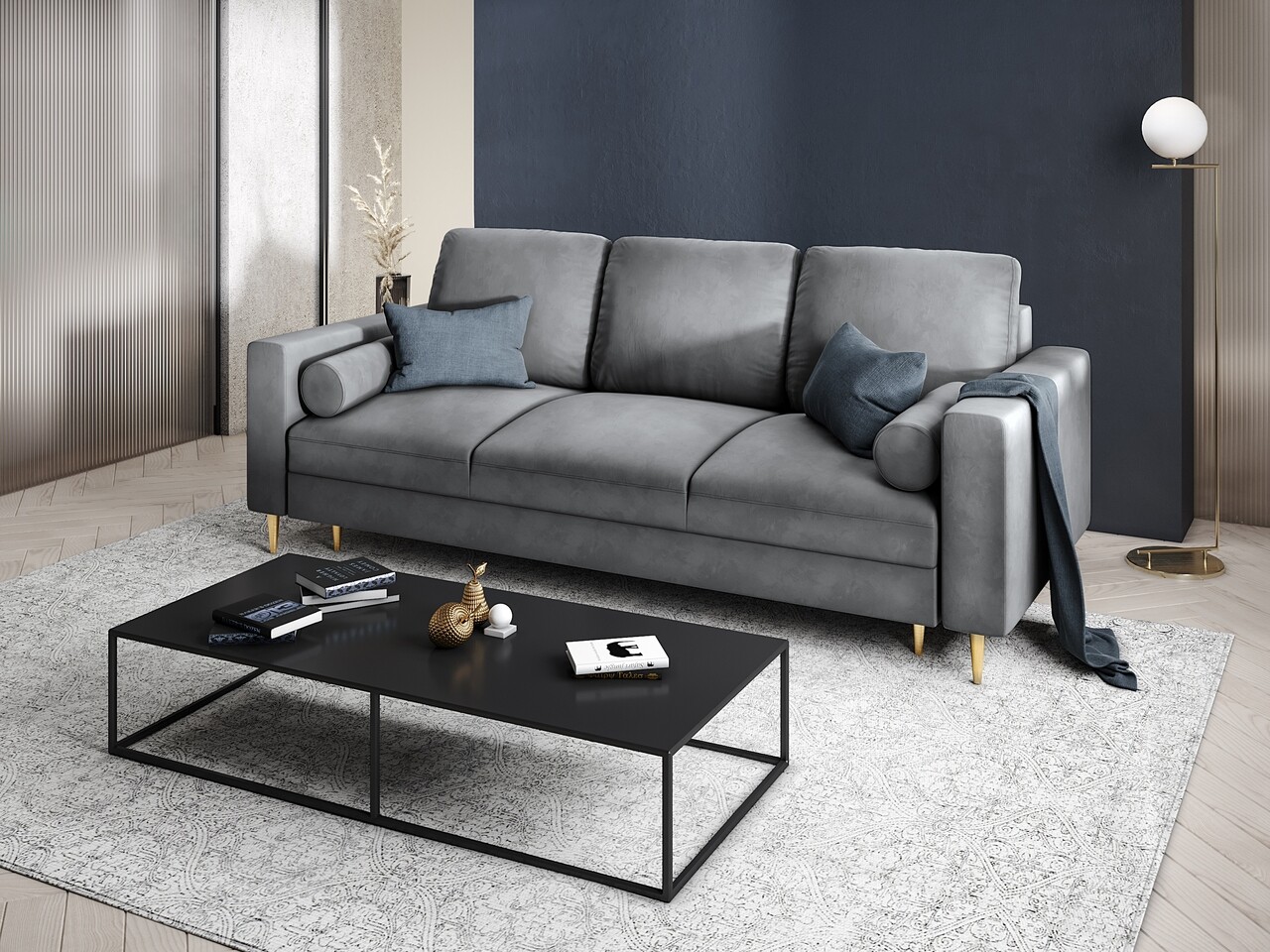 Canapea extensibila, Mimosa, Mazzini Sofas, 3 locuri, cu lada de depozitare, 220x100x92 cm, catifea, gri deschis