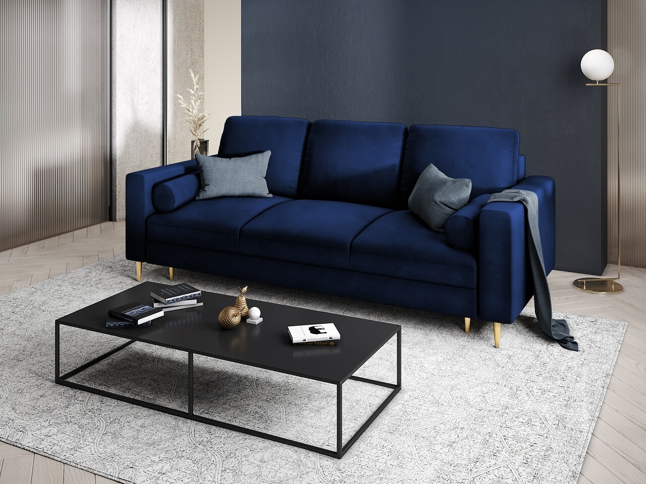 Canapea extensibila, Mimosa, Mazzini Sofas, 3 locuri, cu lada de depozitare, 220x100x92 cm, catifea, albastru regal