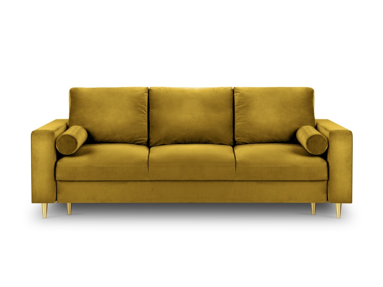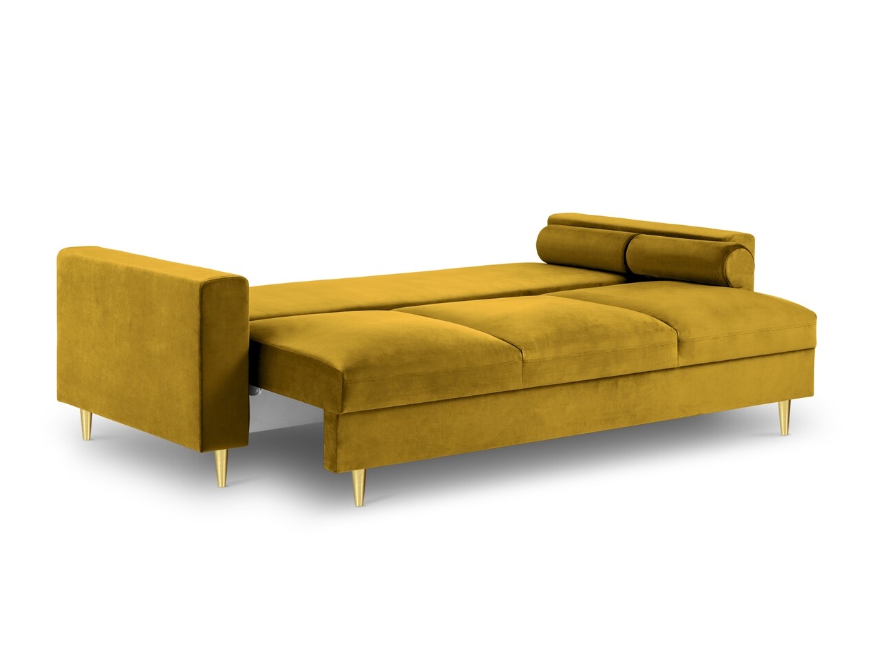 Canapea extensibila, Mimosa, Mazzini Sofas, 3 locuri, cu lada de depozitare, 220x100x92 cm, catifea, galben