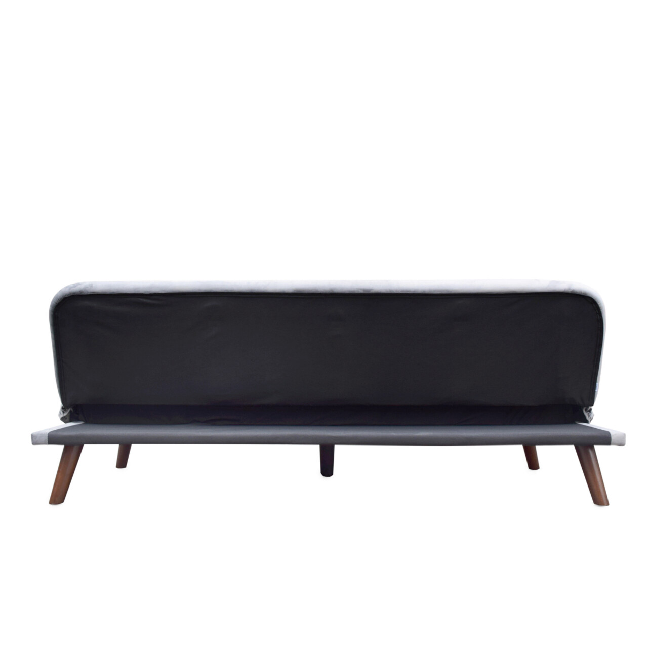 Canapea extensibila Rinko, Homla, 3 locuri, 195x81x74 cm, lemn/catifea din poliester, gri inchis