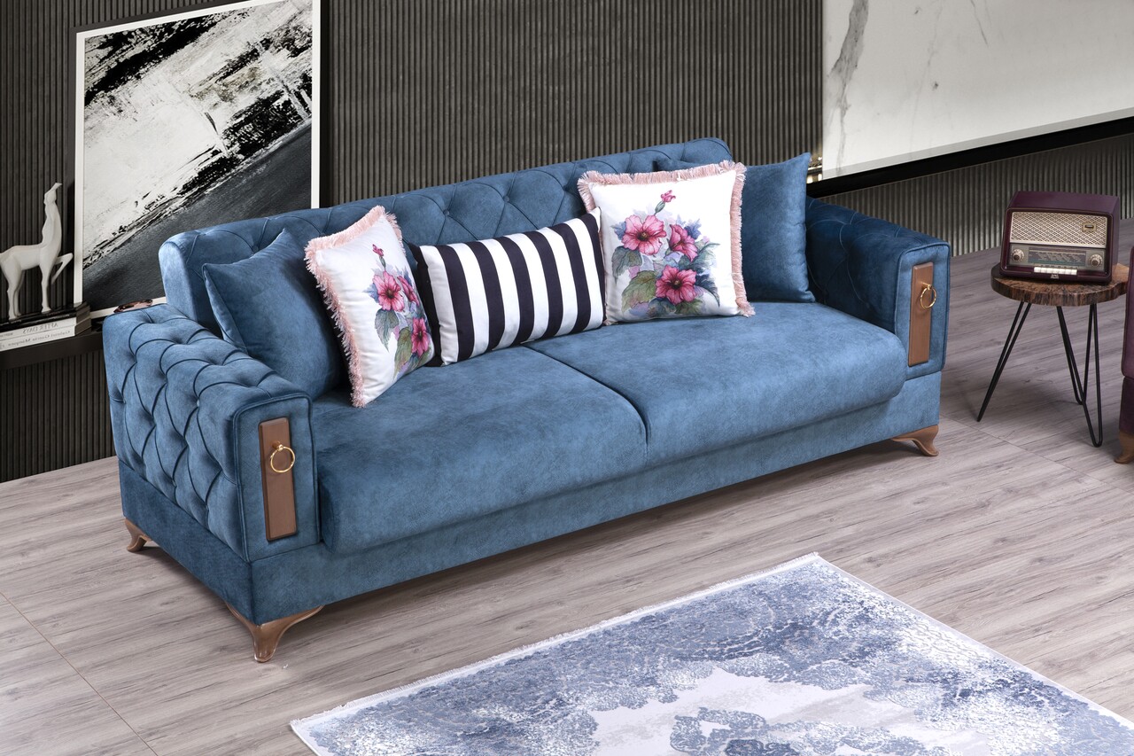 Canapea extensibila Rios, Pandia Home, 220x90x85 cm, lemn, albastru