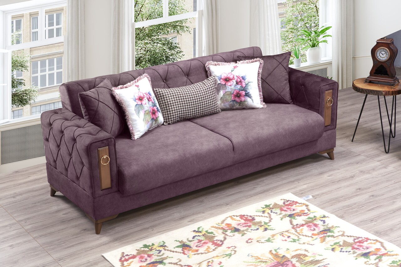 Canapea extensibila Rios, Pandia Home, 220x90x85 cm, lemn, mov