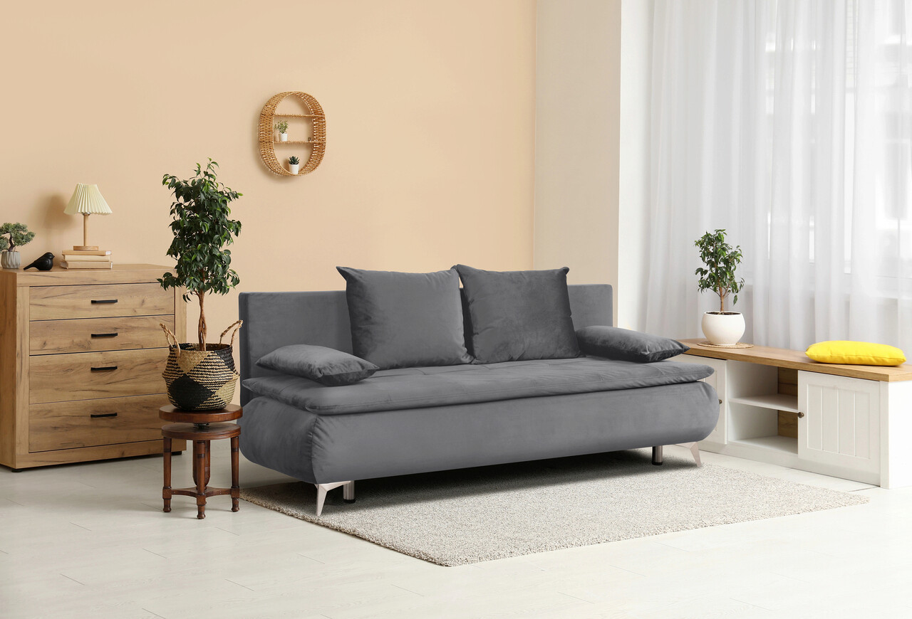 Canapea extensibila Sofie Lux, 203x92x86 cm, 3 locuri, lada pentru depozitare, Gri antracit