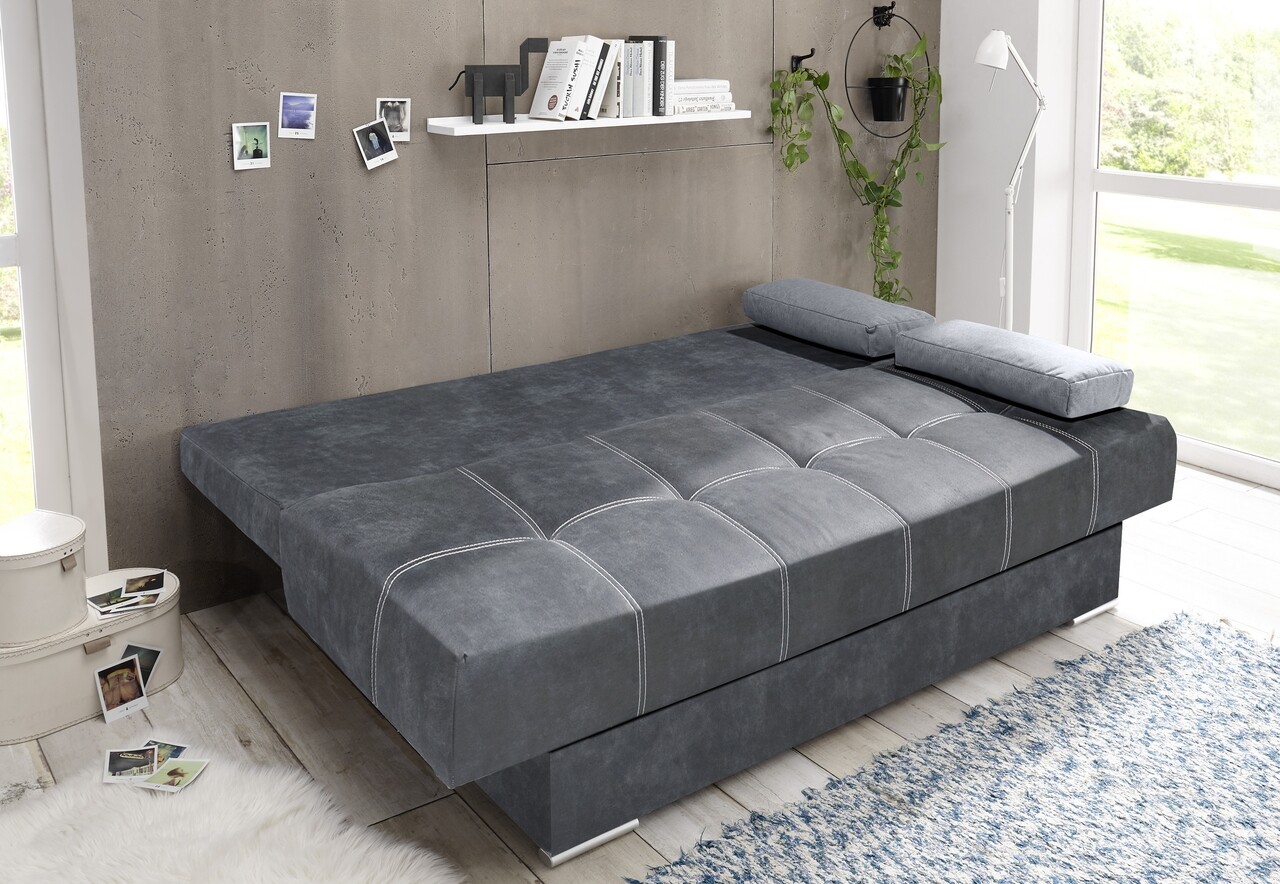 Canapea extensibila, Susanne, Ranger 12, 3 locuri, 196 x 86 x 92 cm, PAL/lemn/poliester, antracit