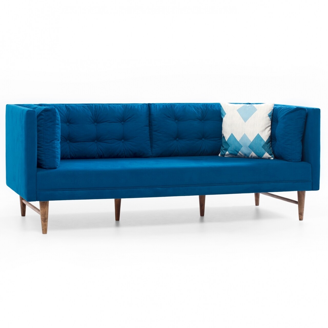 Canapea fixa Point retro, Heinner, 3 locuri, catifea, albastru
