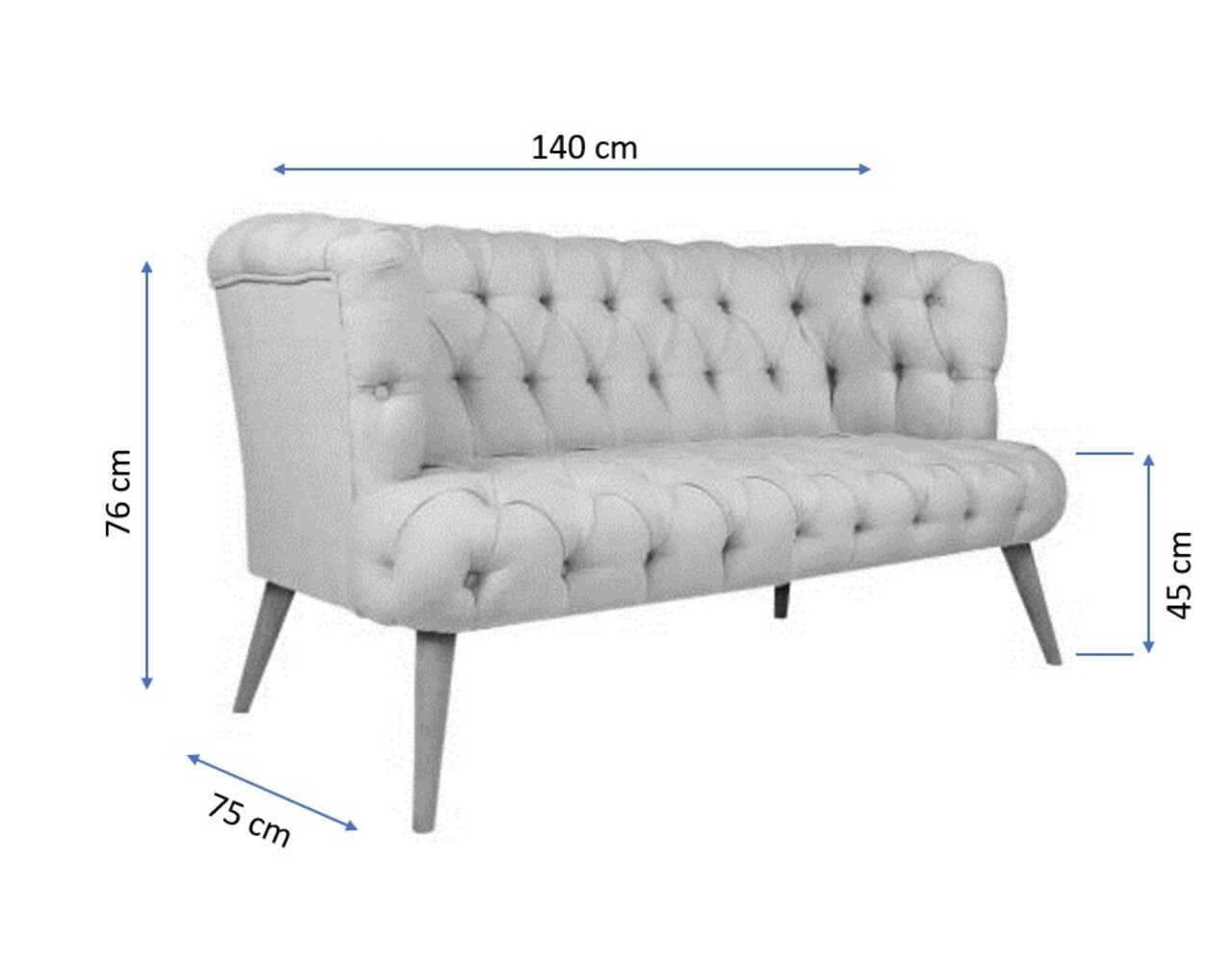 Canapea fixa West Monroe, Zeon, 2 locuri, 140x75x76 cm, lemn, albastru
