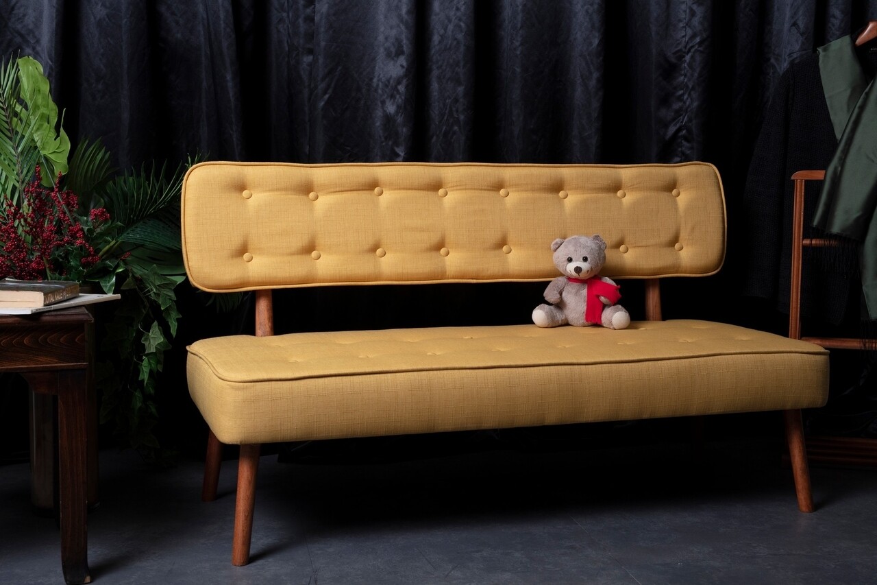 Canapea fixa Westwood Loveseat, Zeon, 2 locuri, 140x64x78 cm, lemn, galben