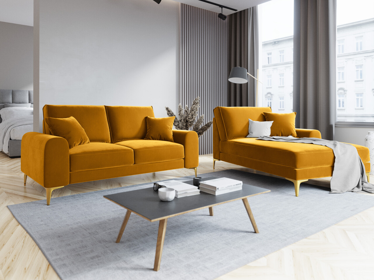 Canapea, Madara, Mazzini Sofas, 2 locuri, gold legs, 172x102x90 cm, catifea, galben