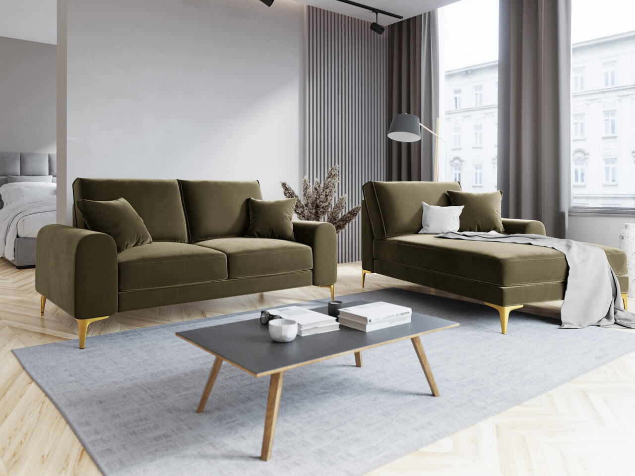 Canapea, Madara, Mazzini Sofas, 2 locuri, gold legs, 172x102x90 cm, catifea, verde