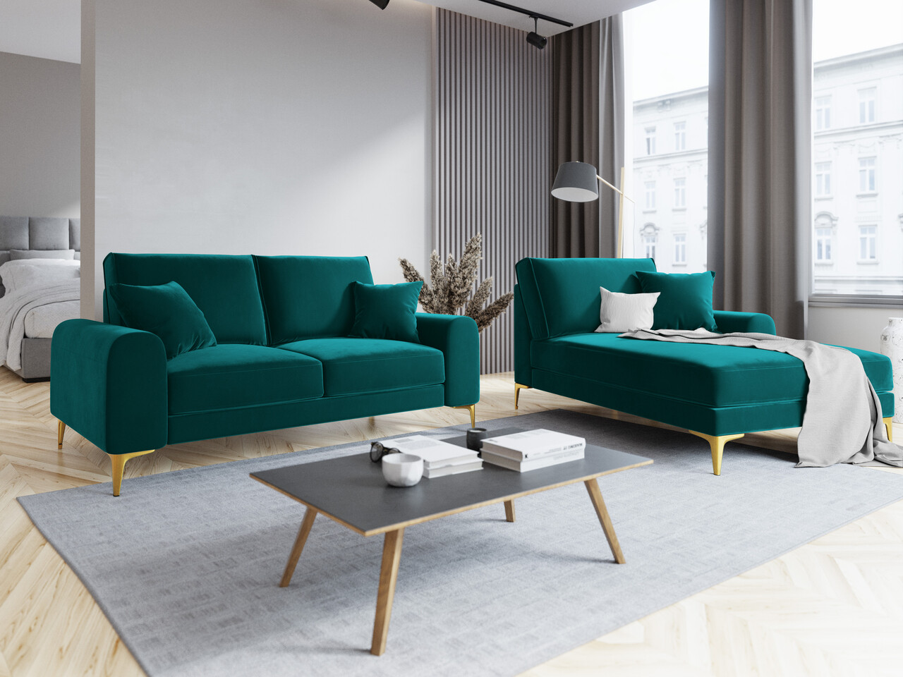 Canapea, Madara, Mazzini Sofas, 2 locuri, gold legs, 172x102x90 cm, catifea, turcoaz
