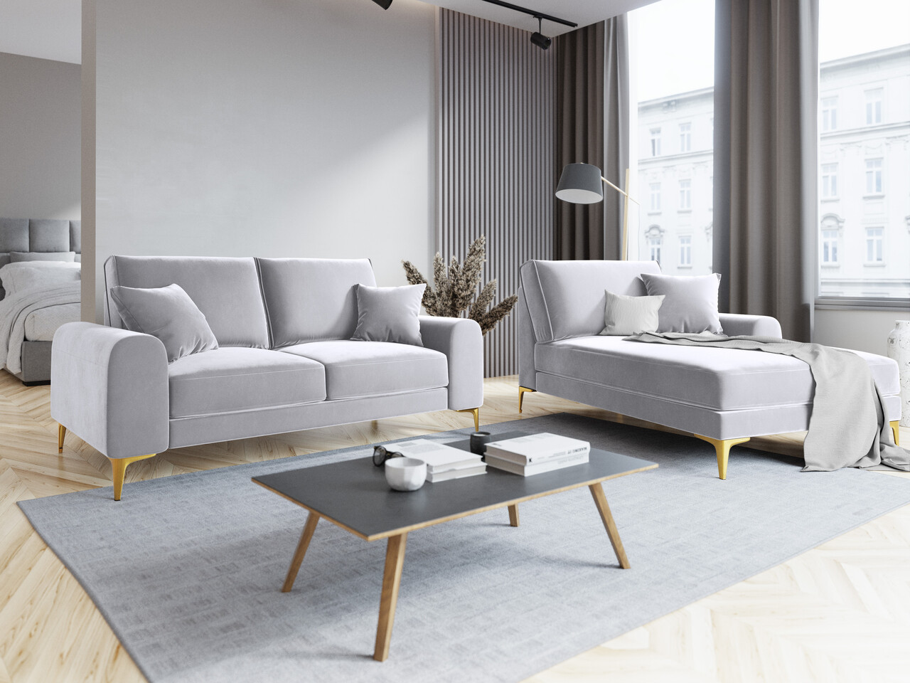 Canapea, Madara, Mazzini Sofas, 2 locuri, gold legs, 172x102x90 cm, catifea, argintiu