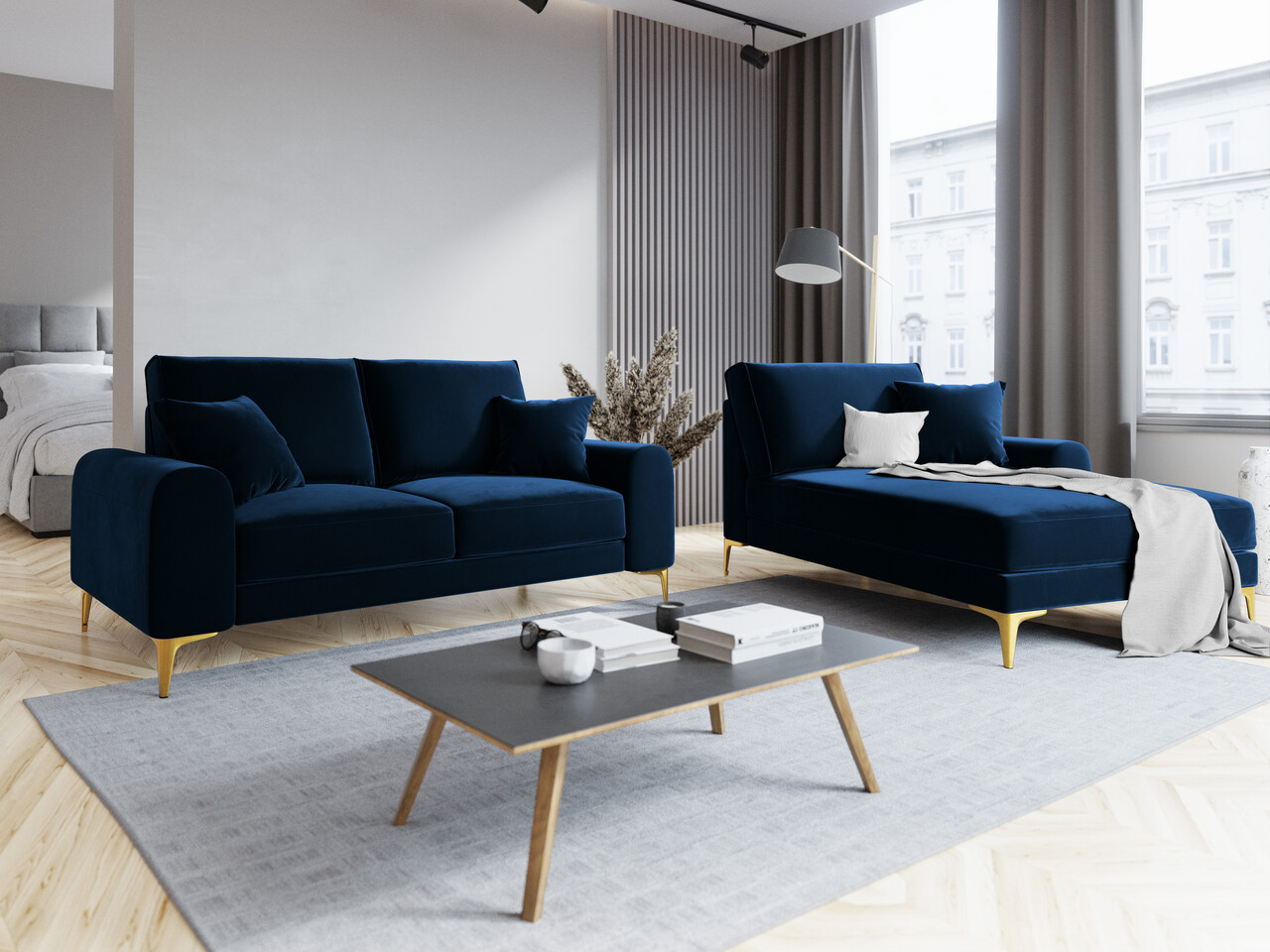 Canapea, Madara, Mazzini Sofas, 2 locuri, gold legs, 172x102x90 cm, catifea, albastru regal