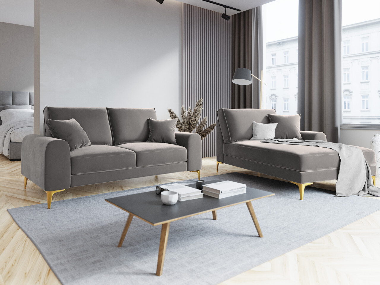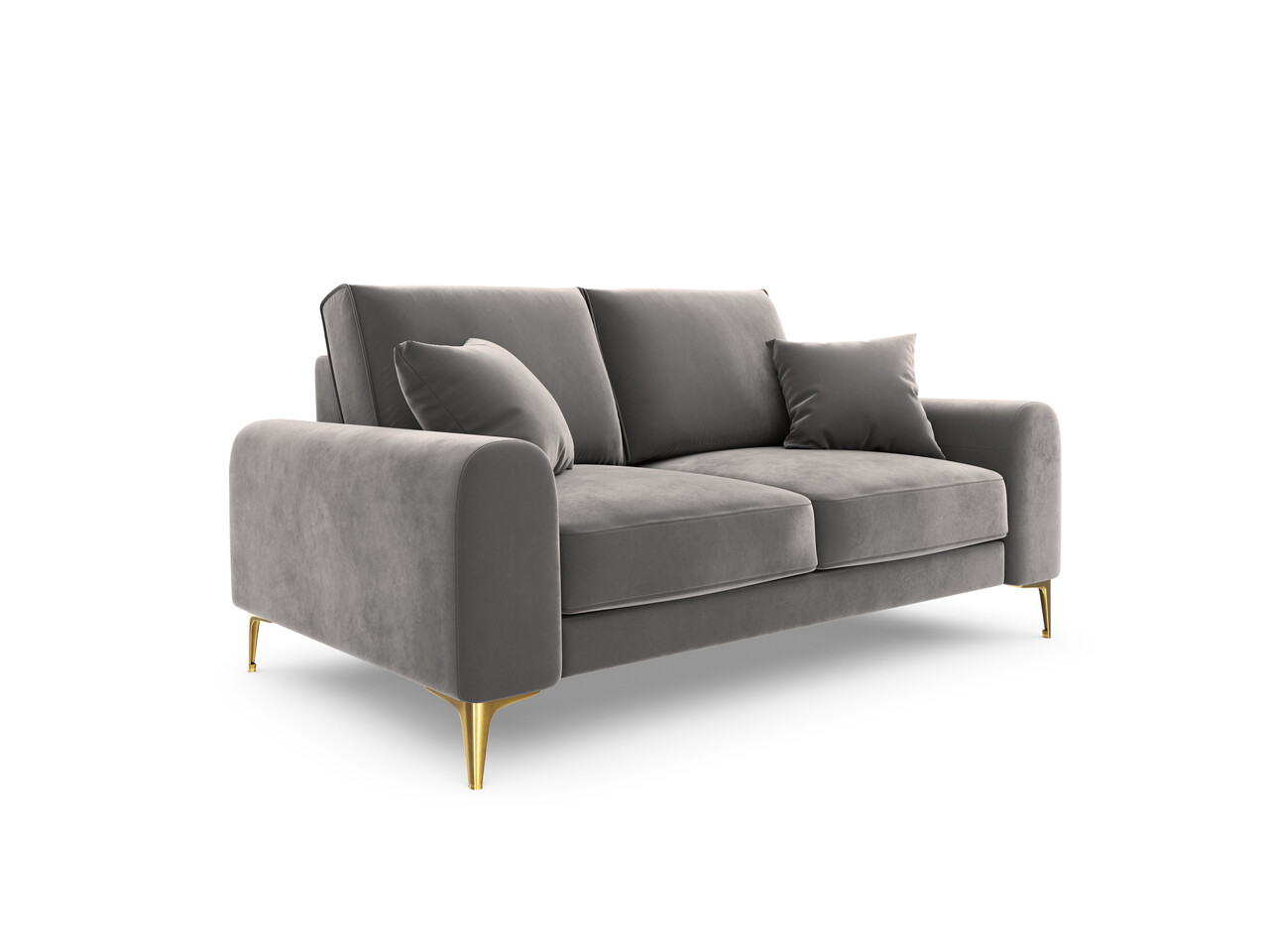 Canapea, Madara, Mazzini Sofas, 2 locuri, gold legs, 172x102x90 cm, catifea, gri deschis
